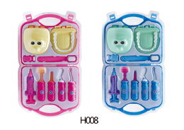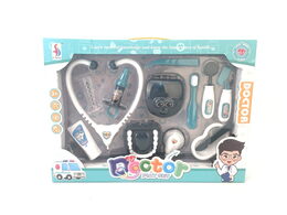 Sada obsahuje: stetoskop, reflexní kladívko, ophthalmoscope, ústní zrcátko, mikroskop, teploměr, nůžky, plastovou misku, skalpel, injekční stříkačka, chirurgické kleště.