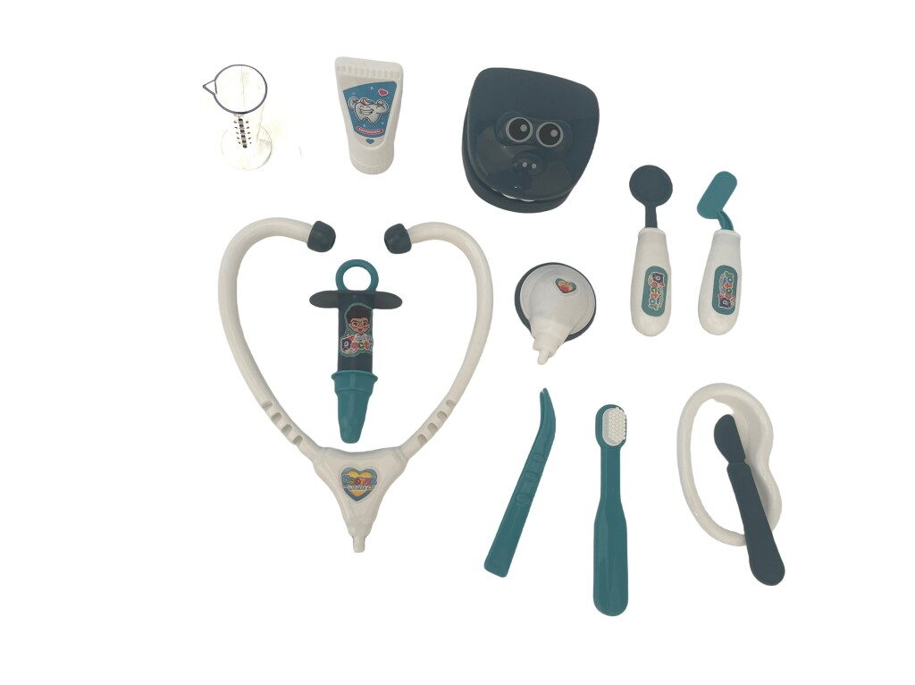 S tímto zábavným zubařským setem se děti mohou stát skutečnými zubními lékaři! Součástí jsou všechny potřebné nástroje – zrcátko, kleštičky, kartáček, model chrupu a další doplňky. Hra pomáhá dětem pochopit důležitost péče o zuby, odbourává strach ze zubaře a rozvíjí jemnou motoriku i představivost. Sada je v modré nebo zelené barvě.
