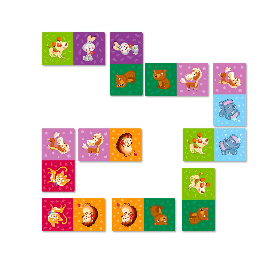 Domino je tradiční logická hra, která baví celou rodinu. Rozvíjí hlavně logické myšlení a to vše zábavnou a hranou formou. Pravidla hry jsou velmi jednoduchá a proto je tolik oblíbená. Hra spočívá v přikládání obrázků tak, aby kartičky spojovaly vždy stejné obrázky. Balení obsahuje 28 ks kartiček s obrázky oblíbených zvířátek. Hra pro 2 hráče, doba hry cca 10 min.
