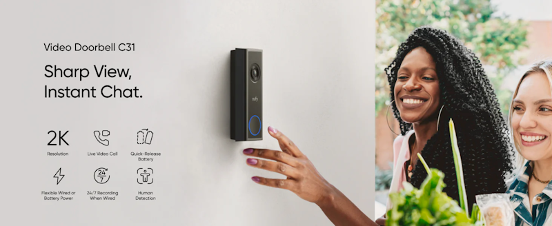 Videozvonek C31 je kompatibilní s domácími zvonkovými systémy a lze jej nainstalovat buď jako samostatné zařízení s baterií, nebo připojit k existujícímu zvonkovému systému pro nepřetržitý provoz. Pro optimální výkon je doporučeno používat s HomeBase2.