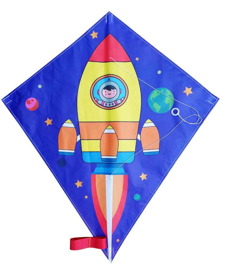 Drak létající nylon 70x60cm kosmická raketa v sáčku 10x72cm