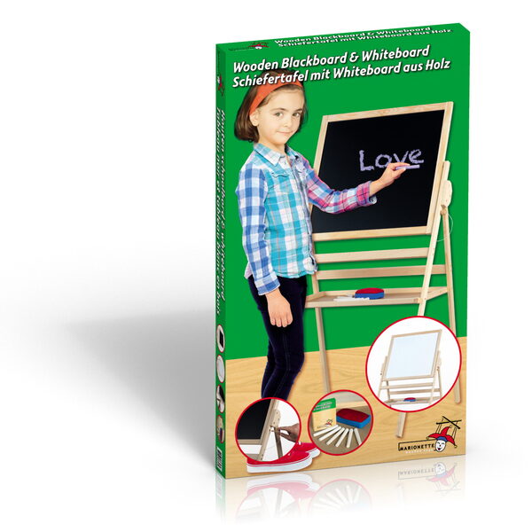 Otočná tabule je z jedné strany černá – pro psaní křídami, z druhé bílá – pro psaní fixy. Výměnu psací plochy zajistíte jednoduchým odjištěním, otočením tabule v jejím středu a opětovným zajištěním. Díky pojistce proti samovolnému otočení je tabule bezpečná. Součástí balení je 6 kříd a stírací houba. Vhodné pro děti od 3 let.