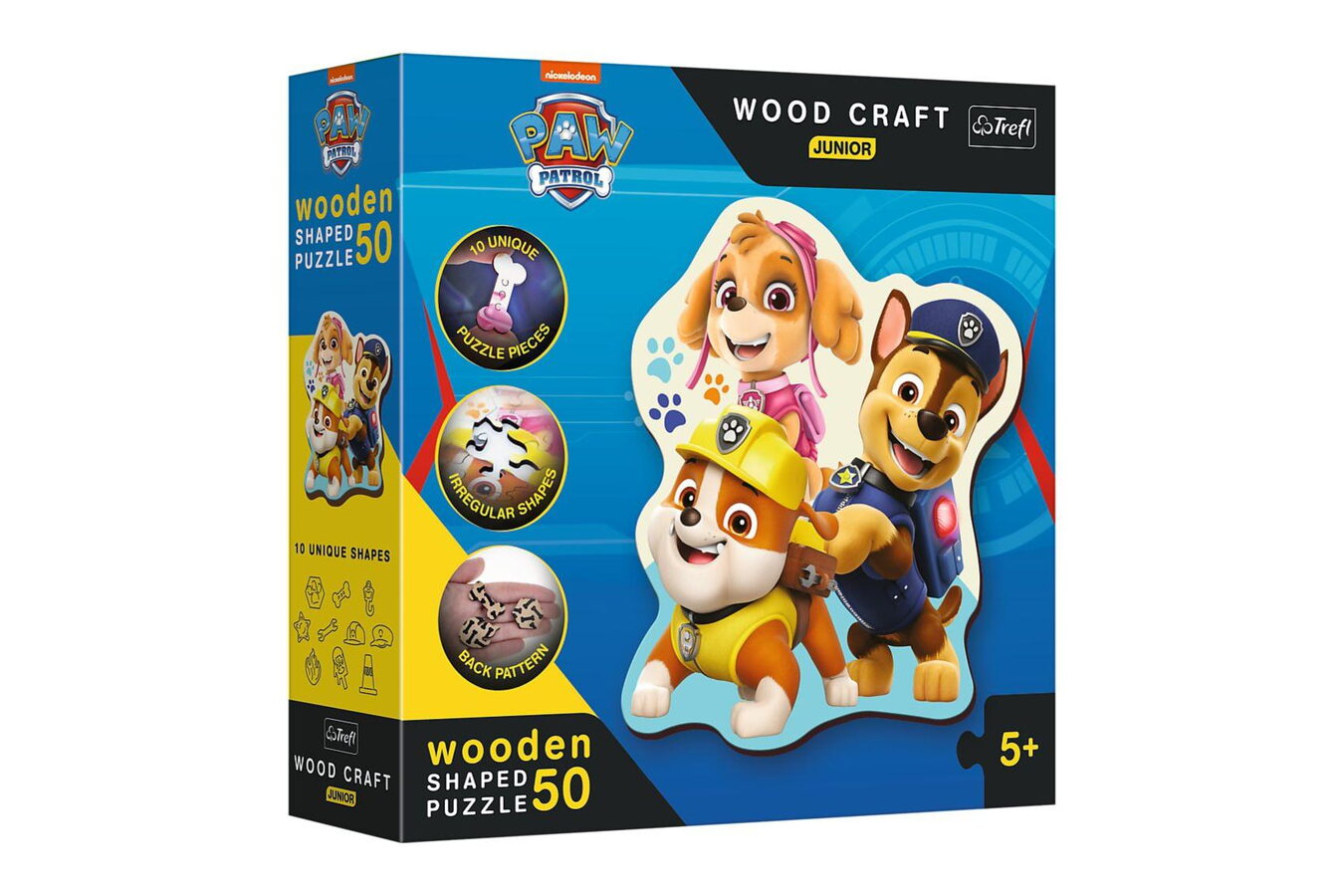 Dřevěné puzzle s nepravidelnými tvary jsou perfektní alternativou k tradičním puzzle se standardními prvky. Sada se skládá z 50 dílků, mezi nimiž se skrývá 10 figurek na téma Tlapková Patrola. Jejich hledání je extra zábava!