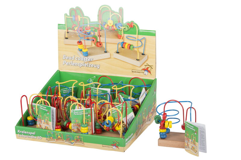 Tento klasický labyrint s dřevěnými korálky naučí děti jemnou motoriku, logické uvažování a přemýšlení nad tím, jak věci fungují. V labyrintu jsou dvě spirály, které se vzájemně proplétají a děti tak mohou zkoumat, jak dostat korálky z jedné strany hrazdy na druhou. Vhodné od 1 roku.