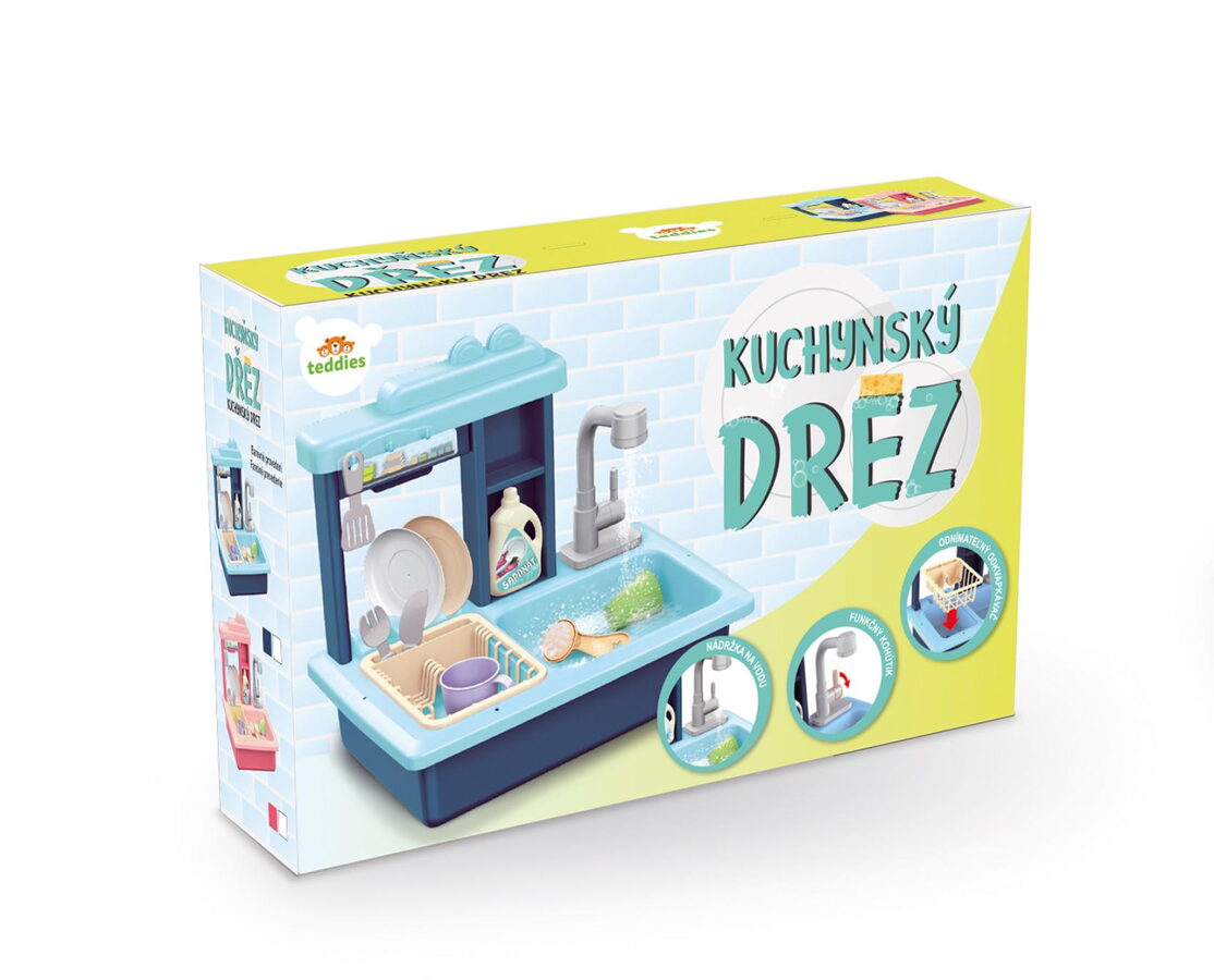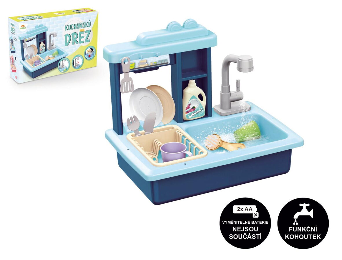 Naplňte dřez vodou a sledujte, jak se z mytí nádobí stane zábava. Dřez s funkčním kohoutkem, nádržkou na vodu, odnímatelným odkapávačem a doplňky, které musí být v každé kuchyňce. Vyrobeno z kvalitního plastu. Baterie 2x AA nejsou součástí balení.