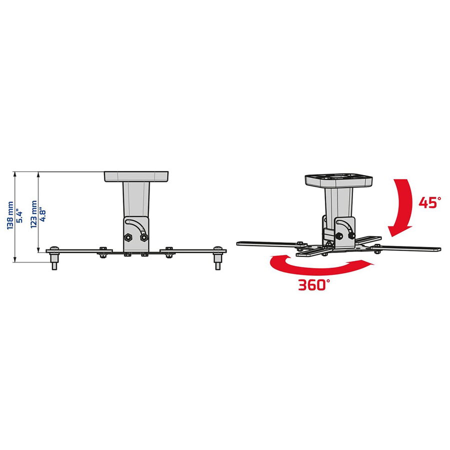 - umožňuje rotaci o celých 360° a náklon projektoru o 45°