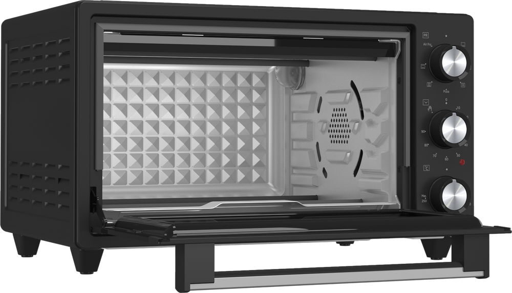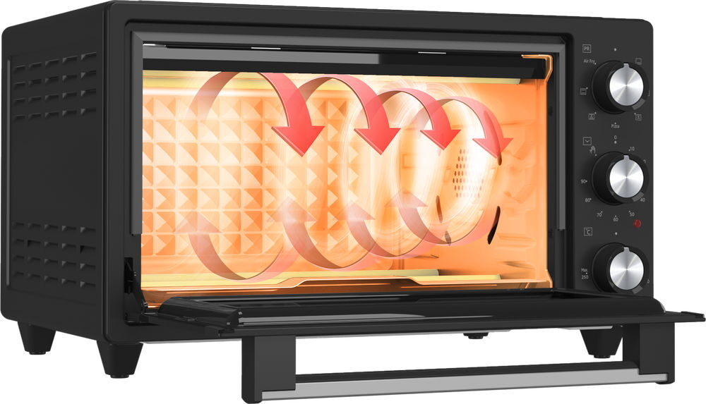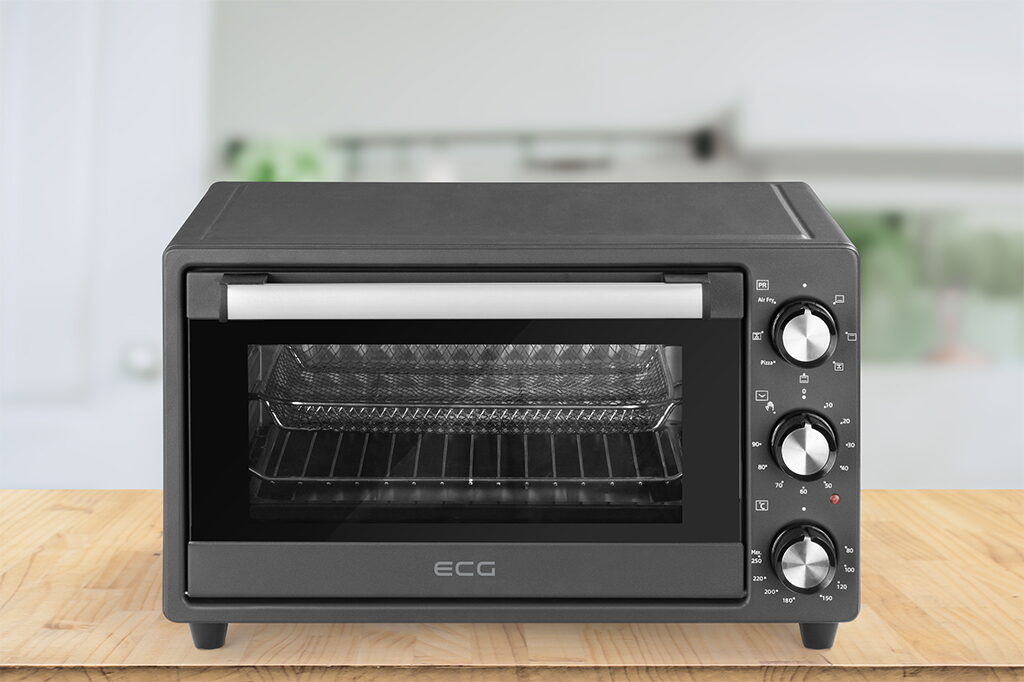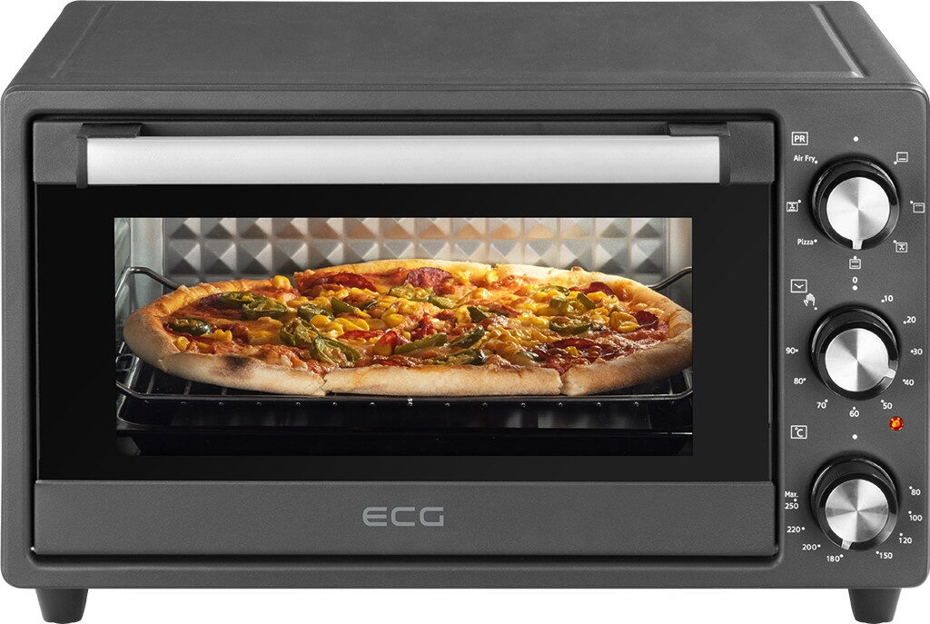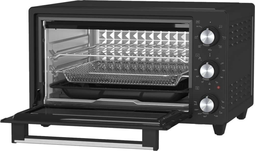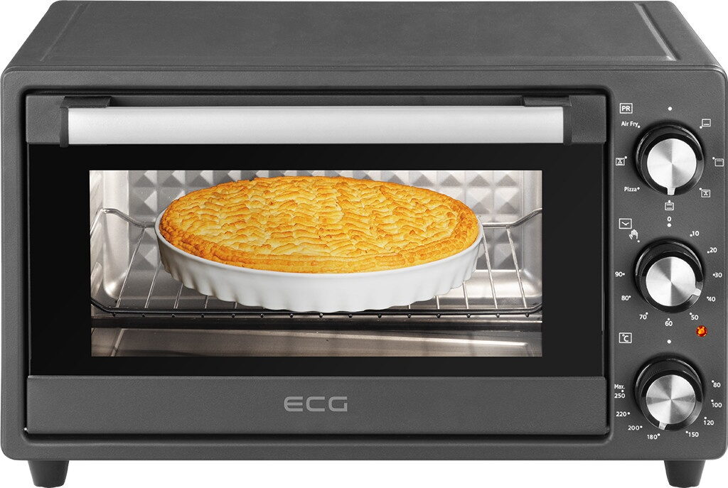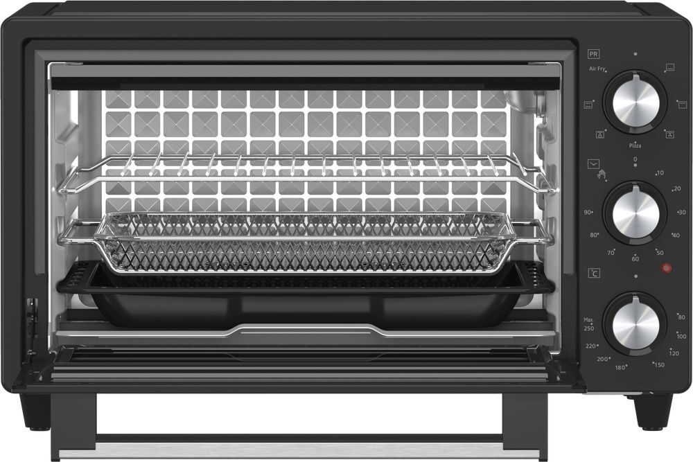- Užitečné příslušenství součástí balení (čtvercový plech na pečení, rošt, podnos na drobky, stojan na horkovzdušné fritování)