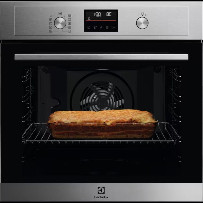 Vestavná horkovzdušná trouba Electrolux EOF4P56X SurroundCook vám zajistí rovnoměrně propečené pokrmy od křupavého kuřete až po nadýchané pusinky. Horký vzduch je vháněn ventilátorem do každého rohu, aby byla zajištěna konstantní teplota v celé troubě. Objem multifunkční trouby je 72 litrů, což je dostatečný prostor pro přípravu pokrmů.