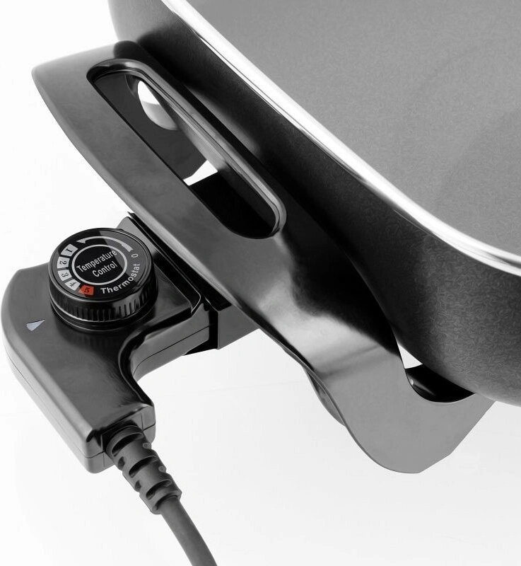Skvělé funkceRovnoměrné rozložení tepla po celé ploše pánve zajistí speciální povrch. Odnímatelný regulátor teploty s napájecím přívodem, který je nastavitelný 1-5 stupeň (0 – 240°C). Dále pánev disponuje skleněnou poklicí s ventilačním otvorem pro únik páry a odizolovaným madlem, tepelně odolnou rukojetí a gumovými nožičkami pro dokonalou stabilitu. |
