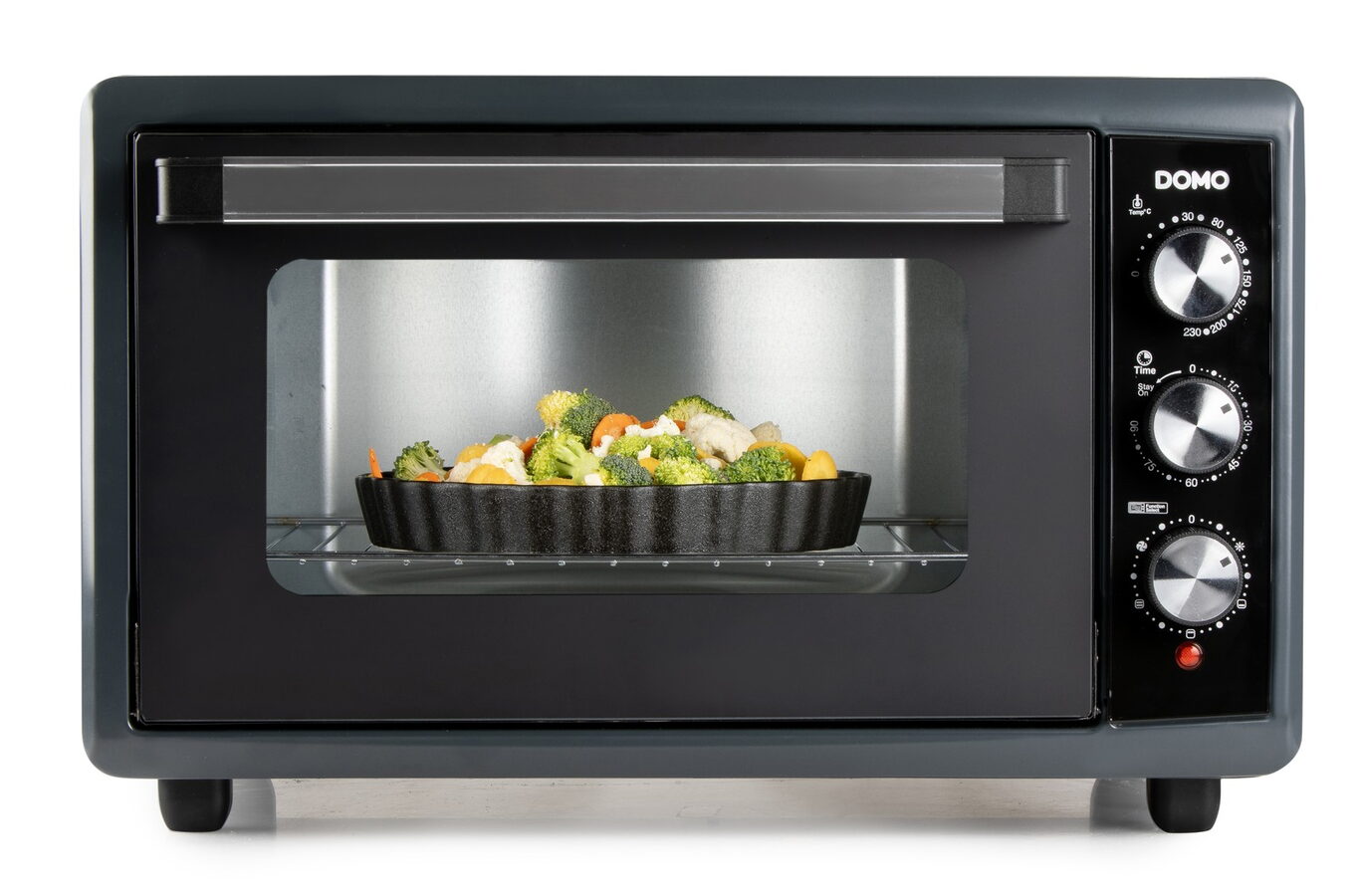 DOMO DO808GO je multifunkční volně stojící trouba s velkým objemem 50 litrů, ideální pro pečení, grilování a zapékání.