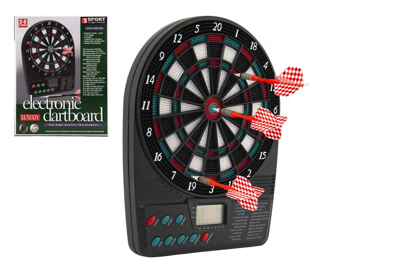 Střílení šipek na terč je velmi oblíbenou zábavou téměř všech kluků i spousty holek. V této sadě najdete elektronický terč 20 x 26 cm se 3 šipkami a 12 náhradními hroty. Obsahuje 18 her s více možnostmi a více úrovněmi. Baterie 3x AA nejsou součástí balení.
