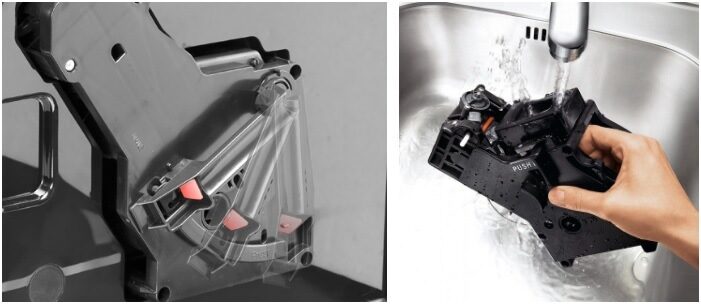 Spařovací jednotku kávovaru lze vyjmout. To umožňuje snadné čištění a zaručuje hygienu provozu.