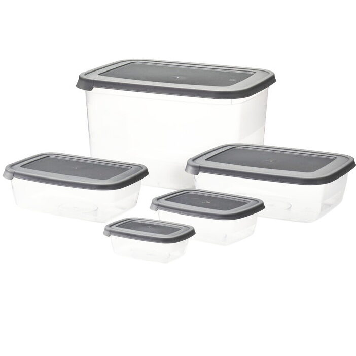 Praktická sada úložných krabiček s víčky v elegantním světle šedém odstínu. Ideální pro skladování potravin, drobností nebo organizaci domácnosti. Krabičky se liší velikostí a díky tomu nabízí široké využití v kuchyni i mimo ni.