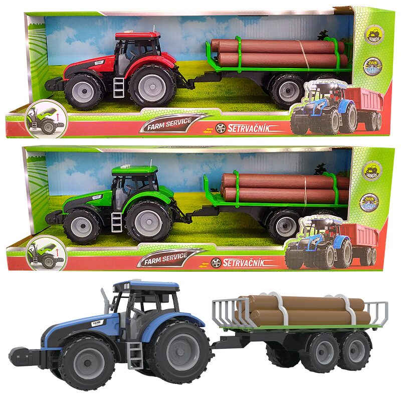 FARM SERVICE - Traktor s valníkem na dřevo se zvuky a světly