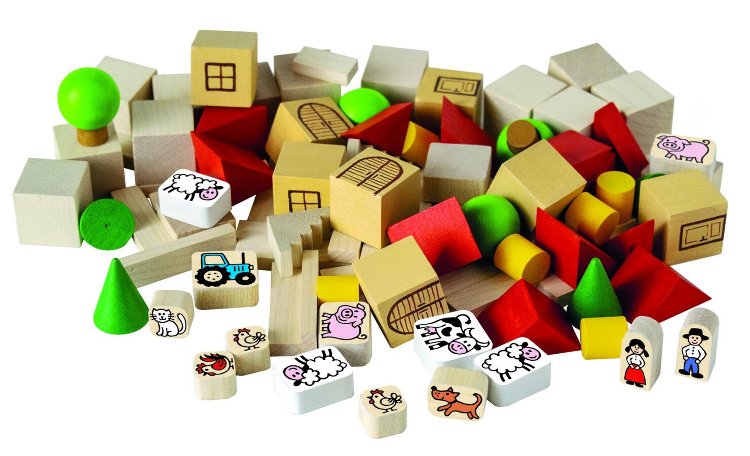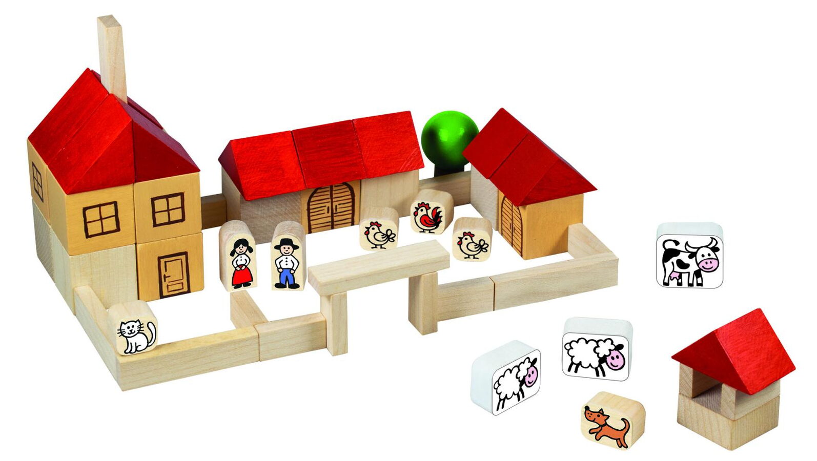 Děti budou milovat senzační farmu, kde je toho hodně k vidění a samozřejmě ke hraní. Složí si za pomoci hracích desek a dřevěných dílků domek, stodolu, ohrady. Vše je doplněné kostičkami farmáře, jeho ženy, traktoru a samozřejmě nechybí zvířátka. Balení obsahuje celkem 100 dřevěných dílků.
