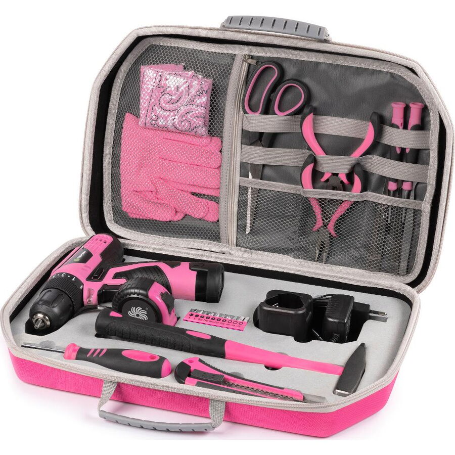 Sada nářadí s vrtačkou FDG 5026-28R od značky Fieldmann nadchne především ženy, a to díky své pastelově růžové barvě. Kutilky, které si troufnou na údržbářské činnosti, ocení i skvělou skladnost nářadí. Tato univerzální šikovná sada se hodí na běžné opravy a údržbu v domácnosti. Využijete ji doma, v dílně i na zahradě. Zahrnuje praktickou vrtačku, kombinované kleště, kladivo, šroubováky, nůžky, 3metrové měřící pásmo, ochranné rukavice, šátek na hlavu a mnoho dalšího. Potřebná práce se okamžitě stane zábavou, ať už budete pracovat sami nebo s nějakým pomocníkem. Sada bude vždy hezky po ruce, připravená na jakoukoli výzvu.