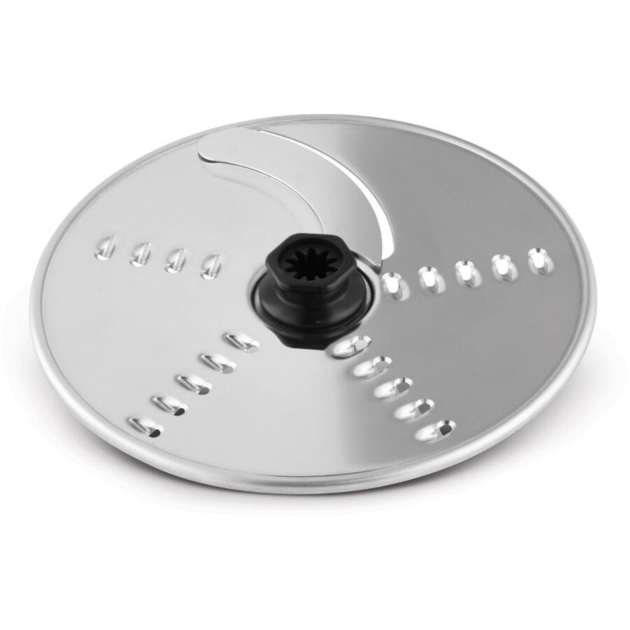 Food processor Multipro Compact s kovovou základnou Výkon 800W 2 rychlosti + puls Kapacita pracovní mísy 2,1l Nerezové sekací nože Šlehací metly Hnětací nástavec 2 oboustranné disky na strouhání a plátky Disk na extra jemné strouhání, integrovaný prostor pro kabel Skleněný mixér 1,2 l Lis na citrusy