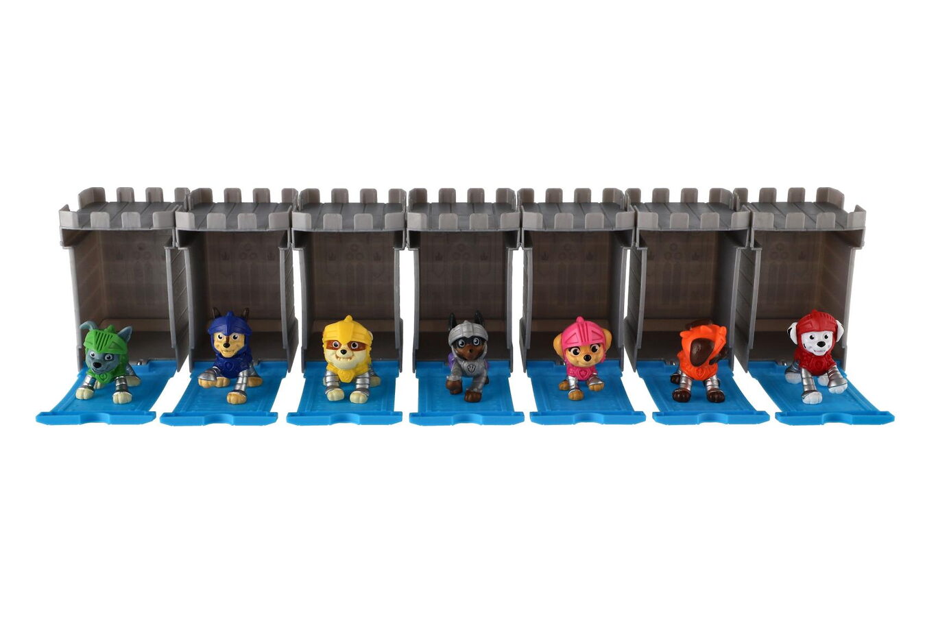 Přidejte se k hrdinským štěňatům z Tlapkové patroly v jejich dobrodružství! Tyto detailně zpracované figurky představují oblíbené psí záchranáře v odvážných rytířských brněních, připravené chránit království. Balení obsahuje hrad ze kterého statečně vyjde jeden ze skvělé partičky Tlapkové Patroly.