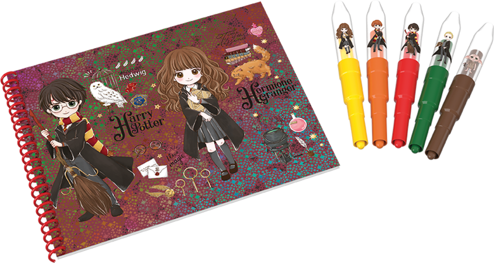 Vstup do světa čar a kouzel se sadou foukacích fixů s motivem Harryho Pottera, která potěší všechny malé výtvarníky a fanoušky Bradavic. Stačí nasadit foukací fix do držáku, fouknout – a barevný sprejový efekt je na světě. Součástí sady je také notes s předtištěnými motivy Harry Potter, který děti mohou vybarvovat nebo doplňovat vlastními výtvory.