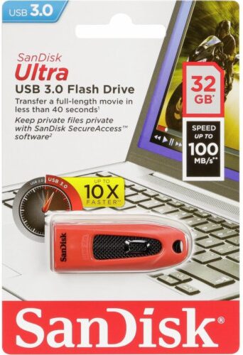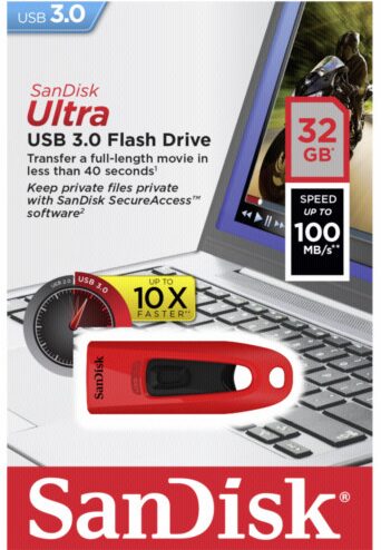 SanDisk Ultra USB 3.0 Flash Drive kombinuje rychlejší přenos dat a velkorysou kapacitu v kompaktním, stylovém balení.