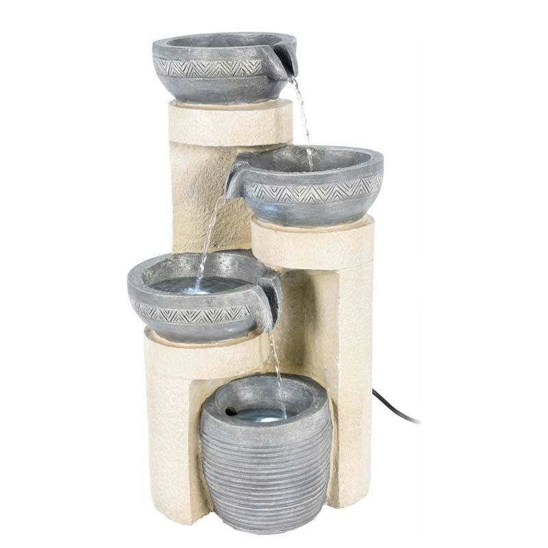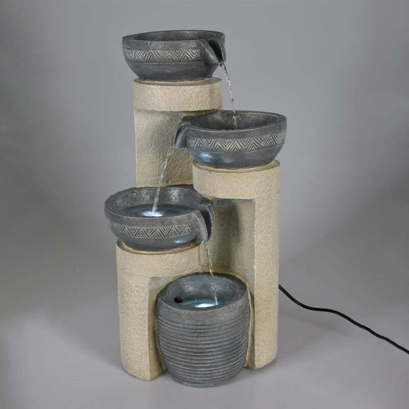 fontána, moderní design s led, 2 led, materiál: polyresin: s venkovním adaptérem ip44 (3.12w / 12vac/400ma) , přívodní kabel: 200cm, materiál: polyresin, velikost: 280x240x490mm, s venkovním adaptérem ip44 (3.12w / 12vac/400ma)