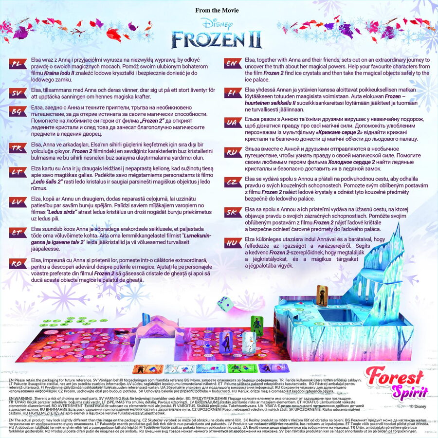 Elsa se spolu se svou sestrou Annou a jejich společnými přáteli vydává na podivuhodnou cestu, aby odhalila pravdu o svých kouzelných schopnostech. Pomozte svým oblíbeným postavám z filmu Ledové království 2 nalézt vzácné krystaly a odnést je do bezpečí do Elsina Ledového paláce. Dětská hra, při které hráči sbírají barevné krystaly. Cílem je donést do cíle co nejvíce kamínků. Balení obsahuje: 3D hrací plán herní žetony papírové hrací figurky barevné krystaly hrací kostku návod Vhodné pro děti od 5 let.
