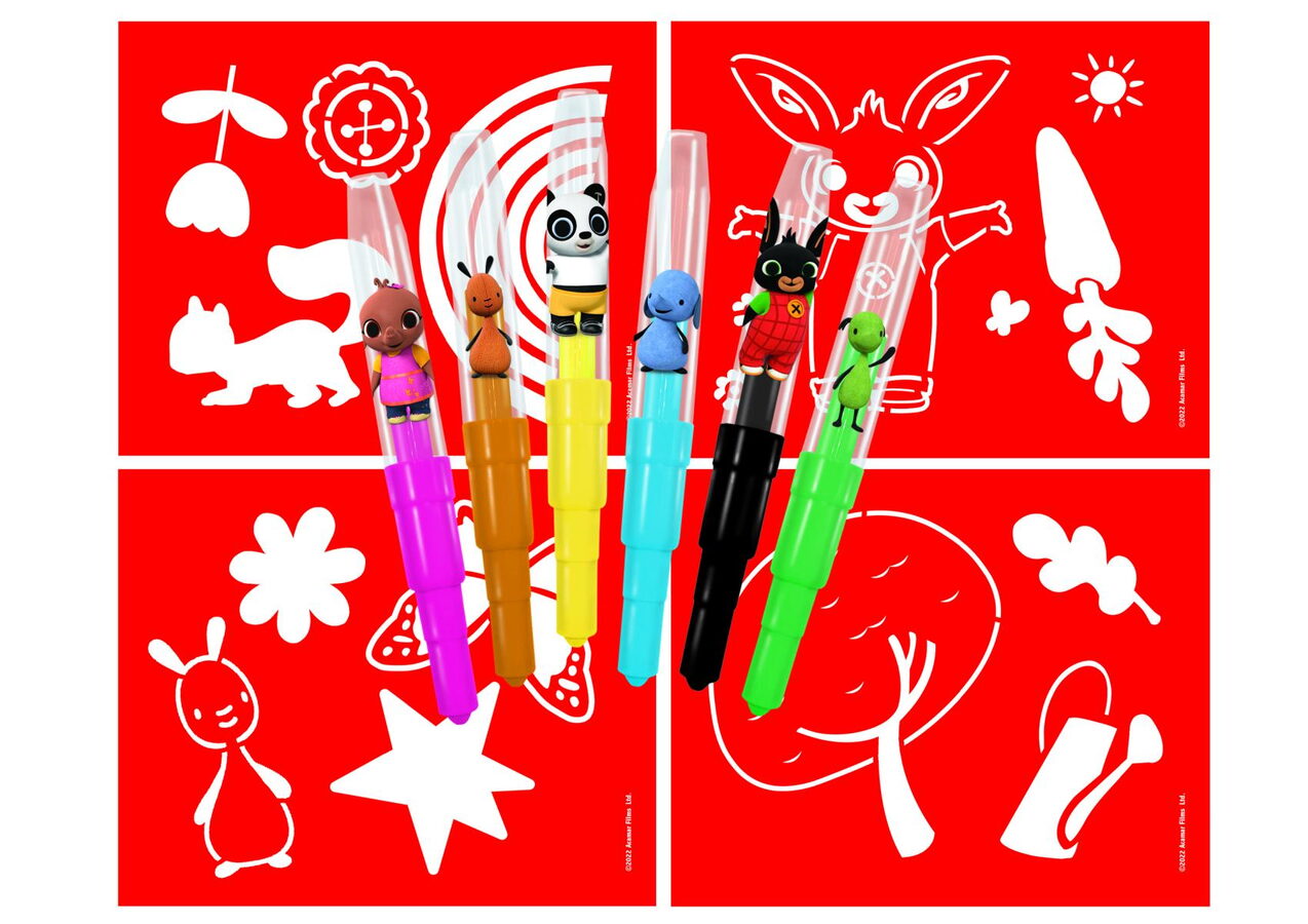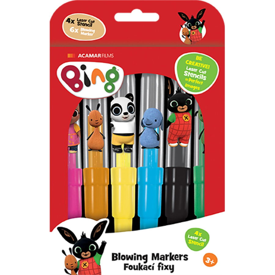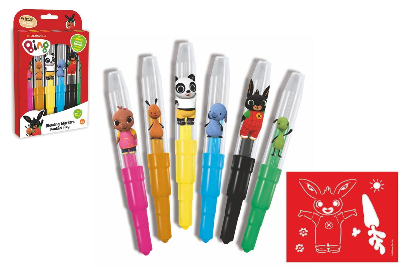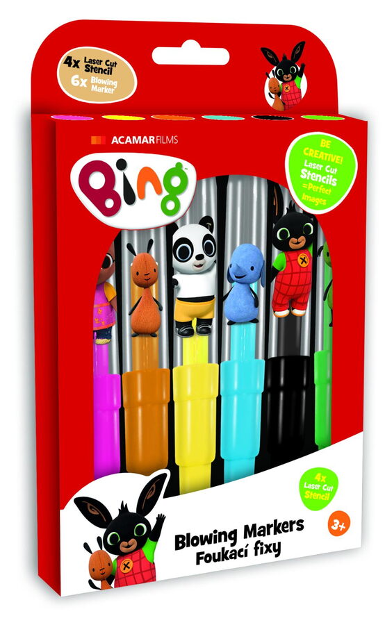 Balení obsahuje 6 barevných foukacích fixů a 4 barevné papírové šablonky v oblíbených pohádkových motivech. Rozměr: 120×20×156mm