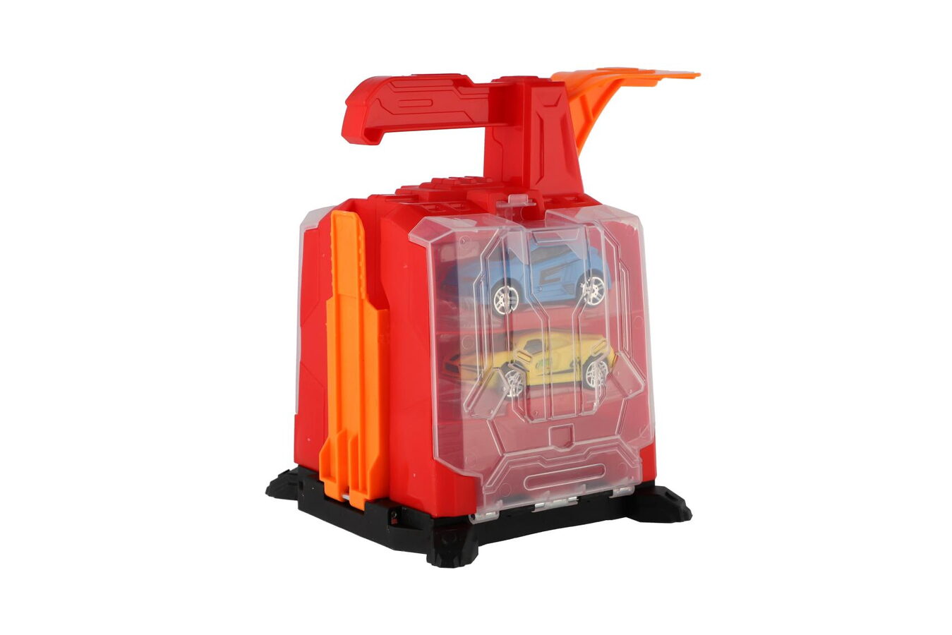 Zábava může začít! Kompaktní plastová garáž s vystřelovacím mechanismem poskytuje akční start pro dvě přiložená autíčka. Stačí je nasadit, zmáčknout a pozorovat, jak vyrazí do závodu! Ideální hračka pro malé motoristy, která rozvíjí postřeh, koordinaci i fantazii.
