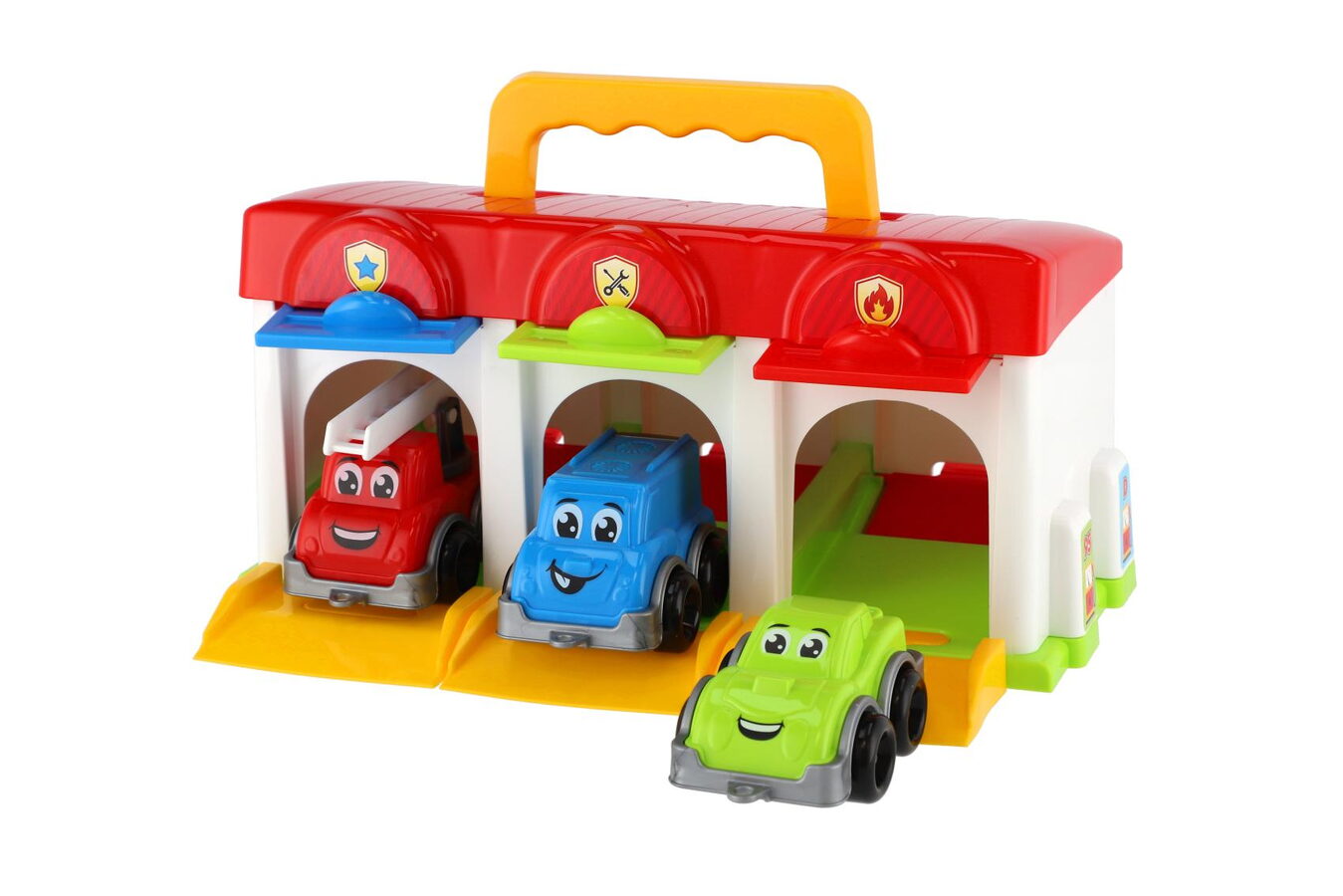 Potřebuješ mít autíčka stále při ruce a v bezpečí? Tato garáž s autíčky a praktickým držátkem je ta pravá! Pod třemi dveřmi se schovávají tři auta - hasiči, osobák a dodávka. V garáži najdete část pro snadnější vjezd a výjezd aut do své kóje.
