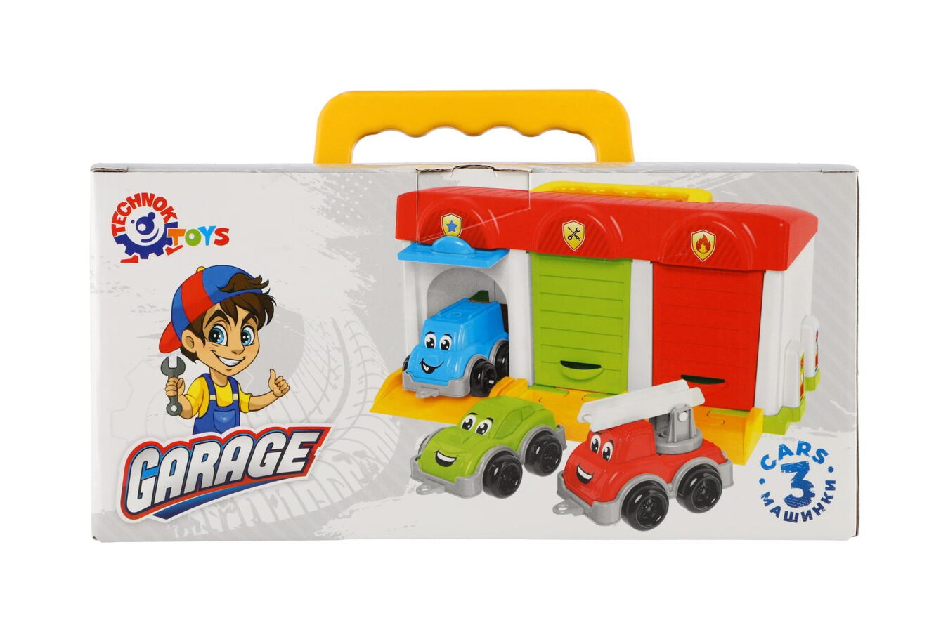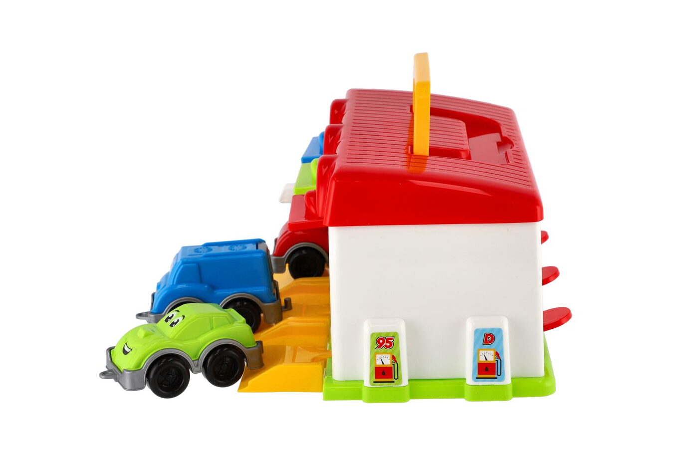 Garáž s autíčky 3ks + doplňky plast v krabici 27x14x15cm