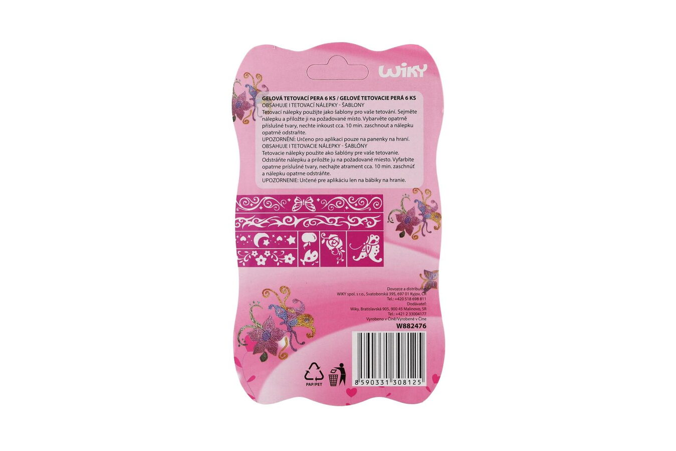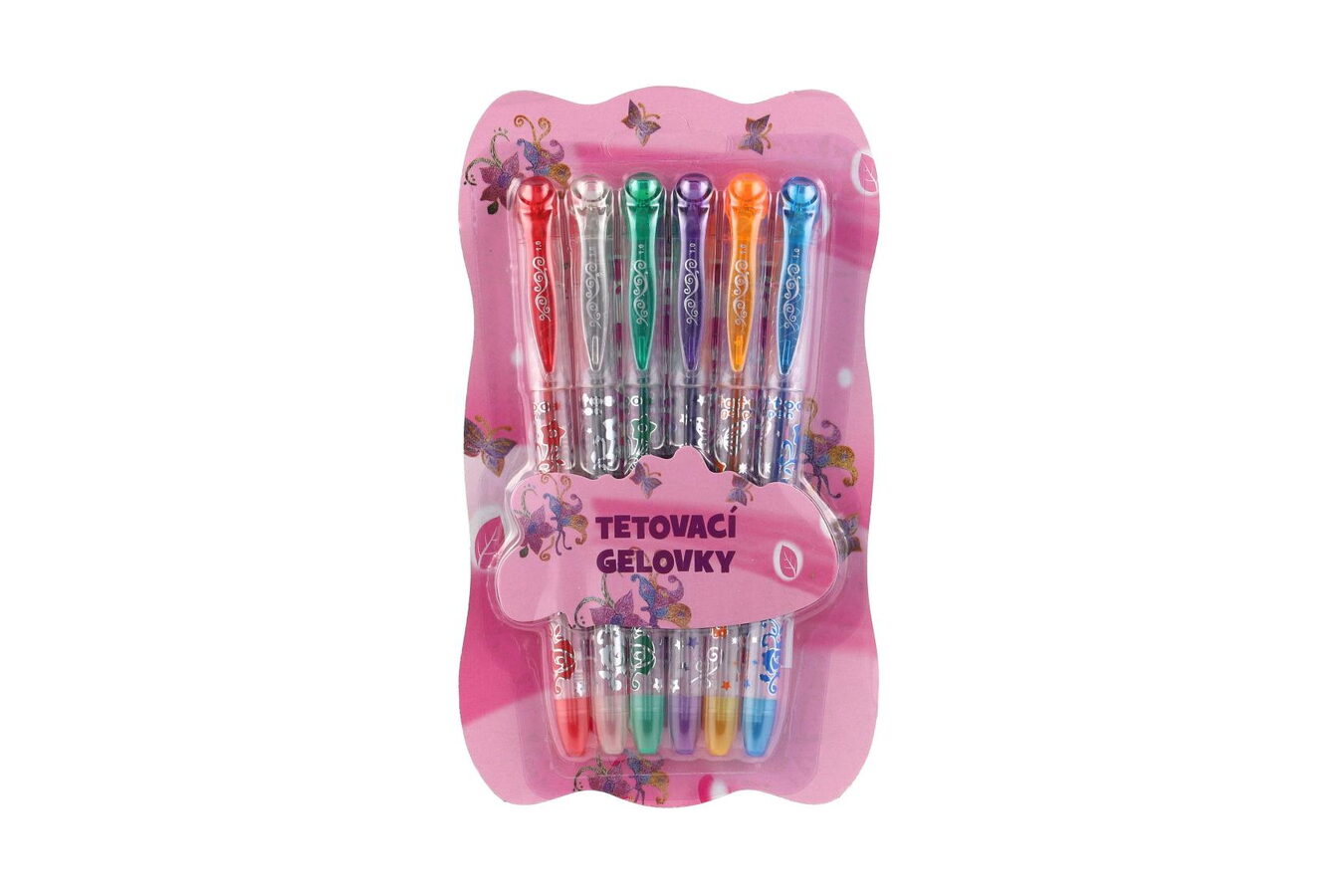 Gelové pero tetovací 6 ks plast + šablony na kartě 10x18x1cm