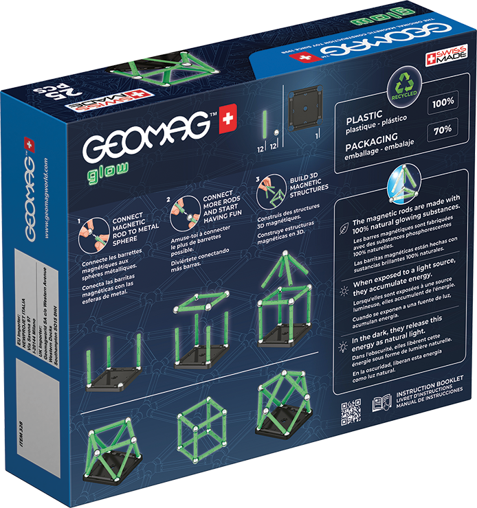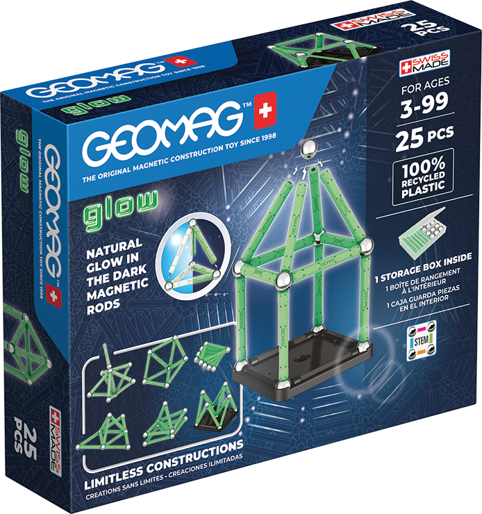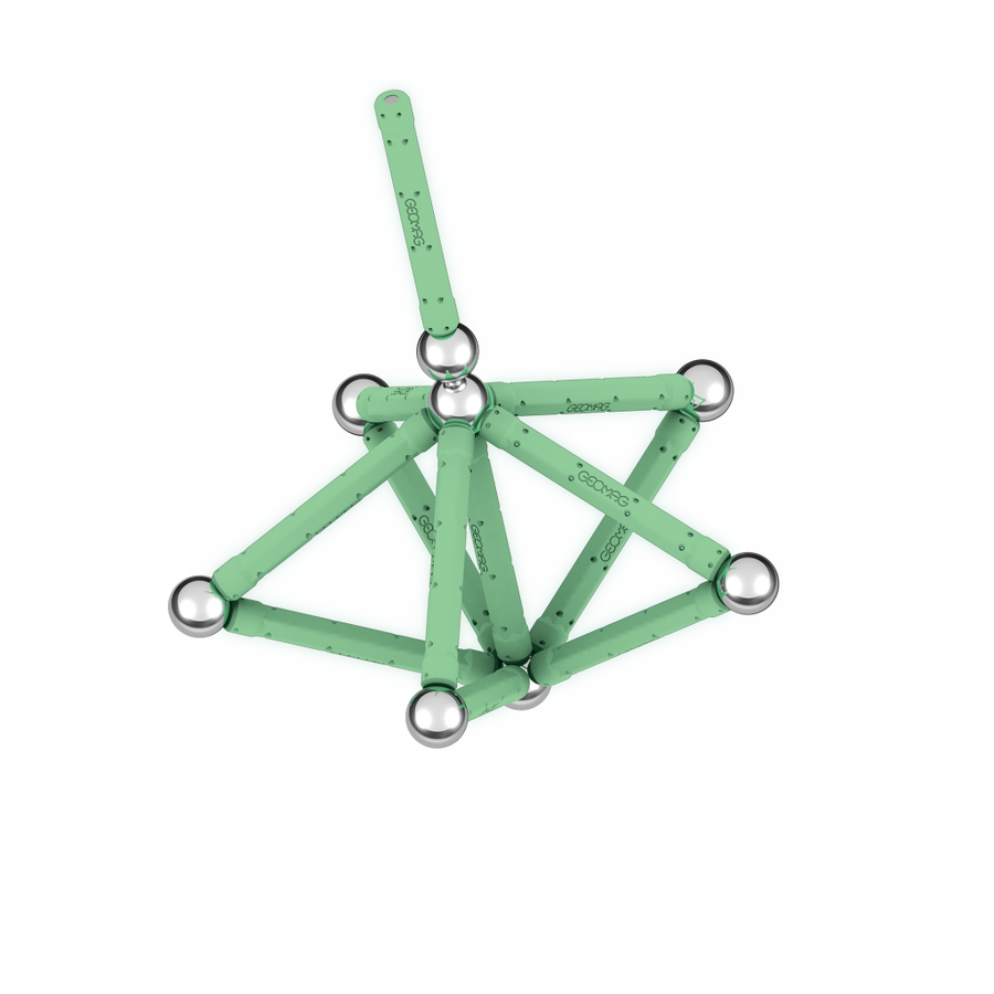 Ve tmě zářící magnetická stavebnice ti přinese nový rozměr zábavy. Stavebnice ze 100% recyklovaného plastu se ve tmě rozhodně neztratí! Balení obsahuje celkem 25 dílků – 12 svítících tyček, 12 kuliček a jeden stabilní podstavec černé barvy ve tvaru čtverce. Určeno pro děti od 3 let.