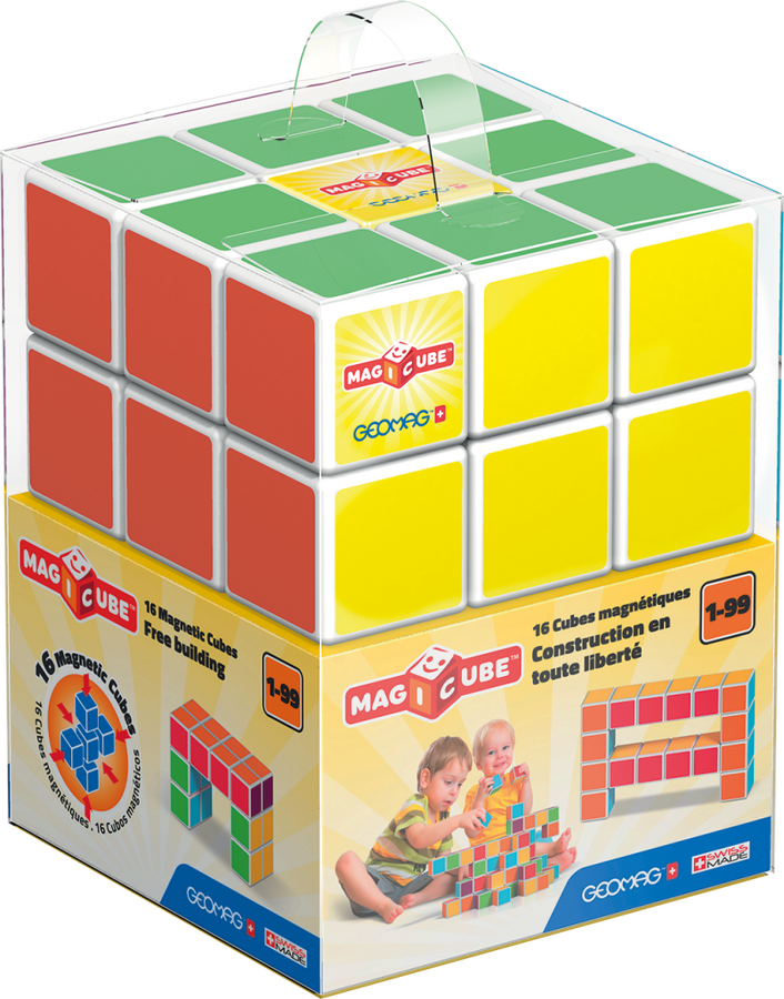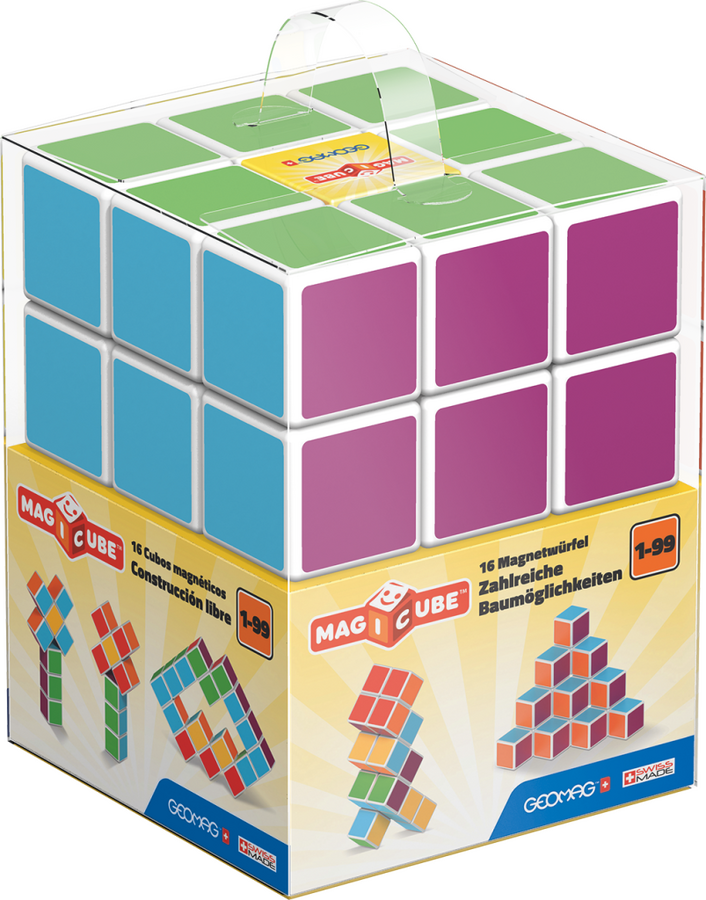 Magnetické kostičky s unikátní vnitřní konstrukcí, díky které se vzájemně přitahují ze všech stran. Navíc každá stěna má jinou barvu. Vhodné i jako vzdělávací pomůcka do škol pro výuku matematiky a geometrie. Obsahuje 16 magnetických kostiček. Vyrobeno ve Švýcarsku, z recyklovaného plastu, vhodné od 1 roku.