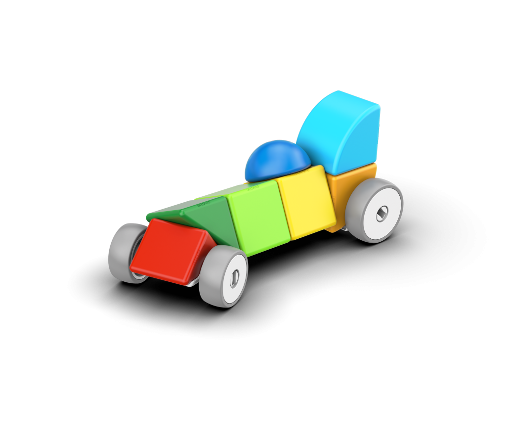 Magnetická stavebnice Geomag Magicube obsahuje 7 magnetických prvků různých tvarů a barev a 4 kolečka se dvěma podvozky. Ideální i pro malé děti již od 1 roku. Vyrobeno ve Švýcarsku z recyklovaného plastu.