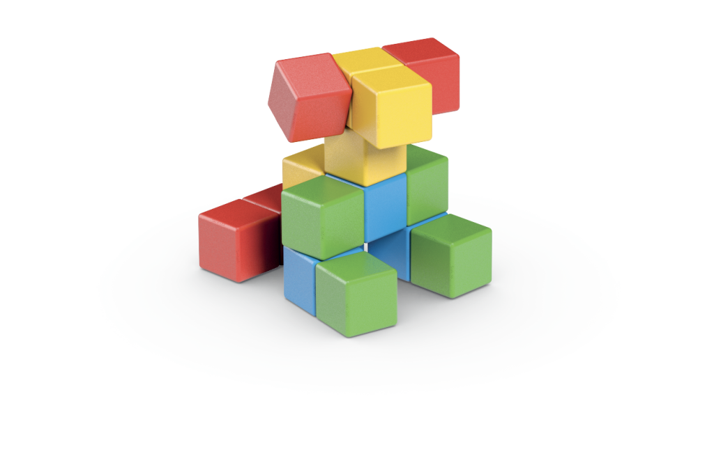 Díky speciální vnitřní konstrukci se magnetické kostičky přitahují ze všech šesti stran a drží i volně v prostoru - stavění ve 3D. Obsahuje 16 kostek ve čtyřech barvách. Vhodné od 1 roku.