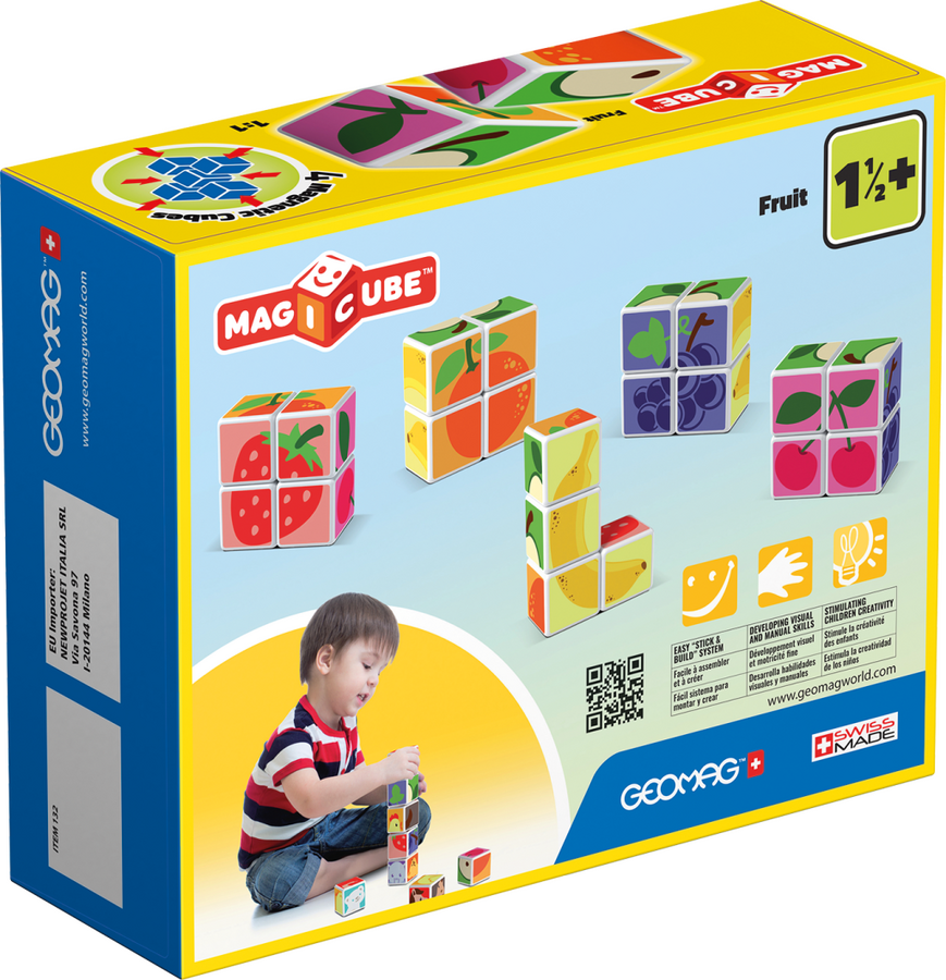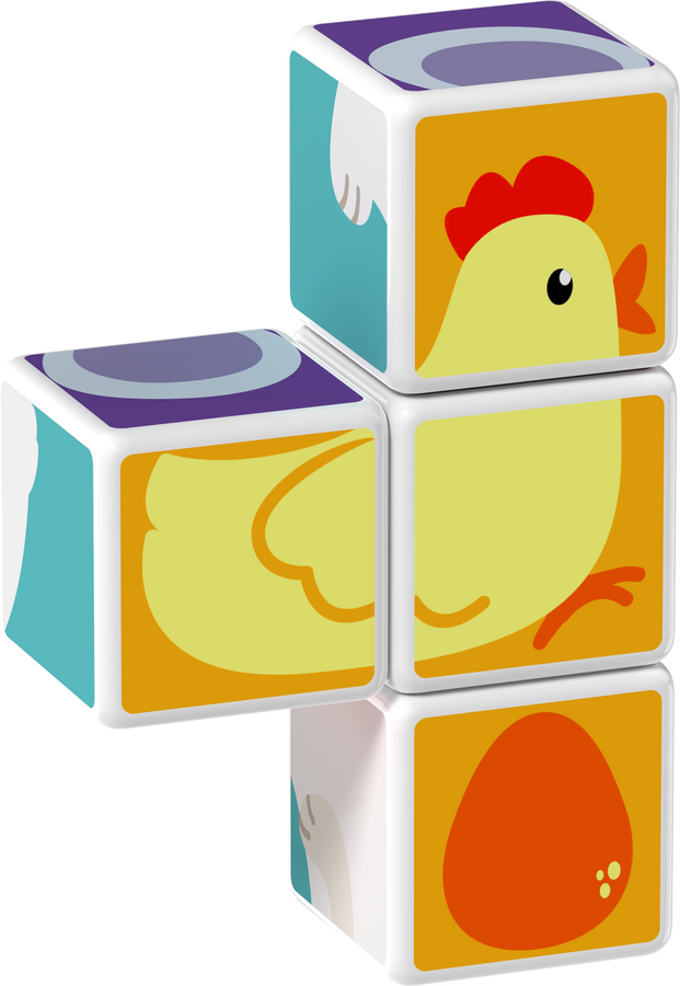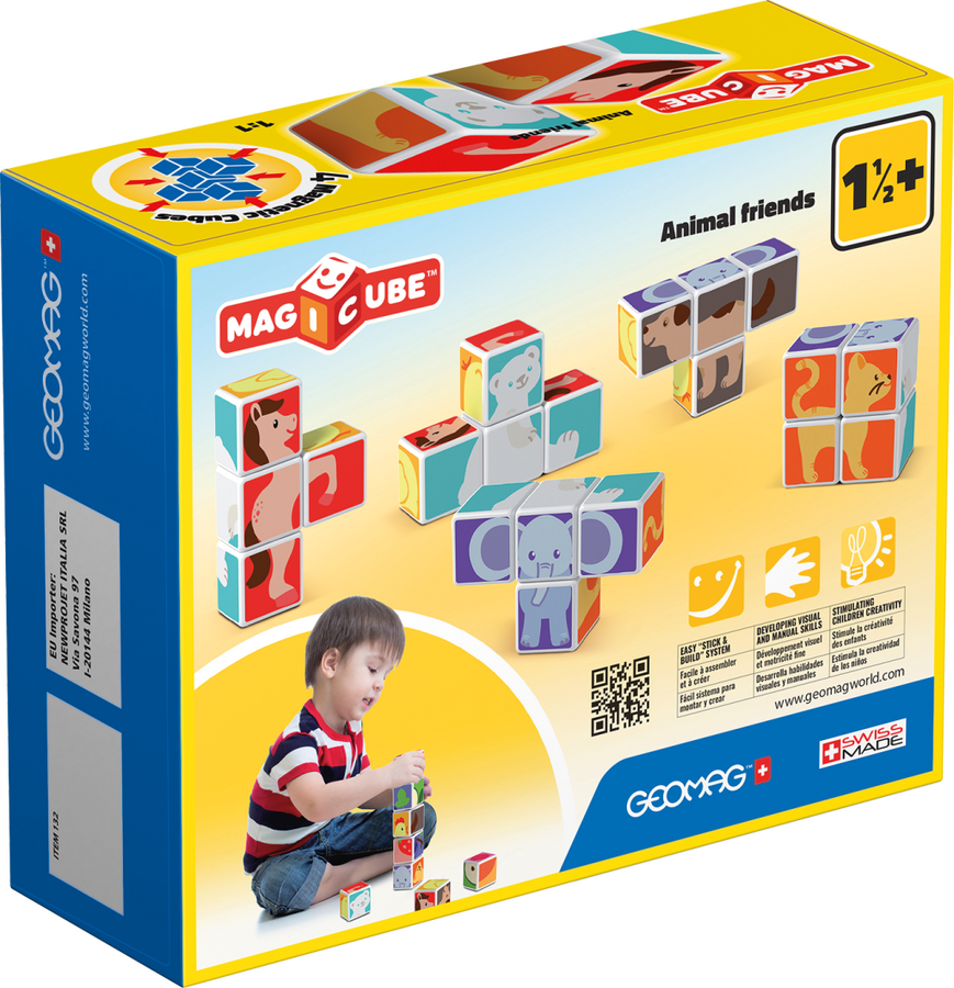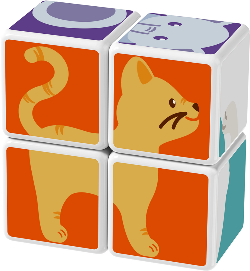 Děti si mohou poskládat svá nejoblíbenější zvířátka snadným spojováním a otáčením kostiček. Obsahuje 4 magnetické kostičky a 6 tipů na skládání (3 kartičky). Určeno pro děti od 1,5 roku.