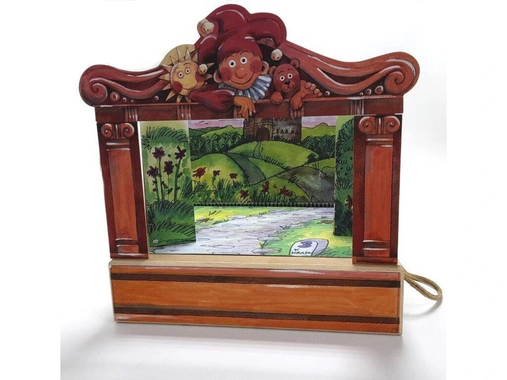 Půvabné dřevěné loutkové divadlo pro vaše děti. Ponořte se spolu s dětmi do světa nejznámějších českých pohádek. Vhodné pro děti od 3 let. Krásně propracované dřevěné loutkové divadlo s jednotlivými loutkami, probudí u Vašich dětí fantazii, posílí paměťové a výrazové schopnosti. Velikost loutkového divadla: 46 x 41 x 32 cm Velikost loutky: 12-15 cm Sestava obsahuje dřevěnou krabici, 8 dřevěných loutek, 4 scény, proscenium s veselým kašpárkem a oponu. Loutky se mohou lišit v barevných detailech. Obsahuje oboustranné kulisy: Na zámku / Před zámkem U jeskyně / V pekle Obsahuje loutky: Král Ferdinand Královna Alžběta Princezna Anička Princ Slavomír Tříhlavý drak Čertík Bruno Čaroděj Vilém Kašpárek Celá loutková sestava je zabalena v praktickém dřevěném kufříku s posuvným víkem. Hlavní vlastnosti: Dřevěné divadlo s 2 oboustrannými kulisami a 8 loutkamiRučně vyráběné loutkyRozměry hlavní scény jsou 40x23 cm, rozměry bočních kulis jsou 9,5x23 cmDivadlo lze rozšířit o další loutky a kulisy
