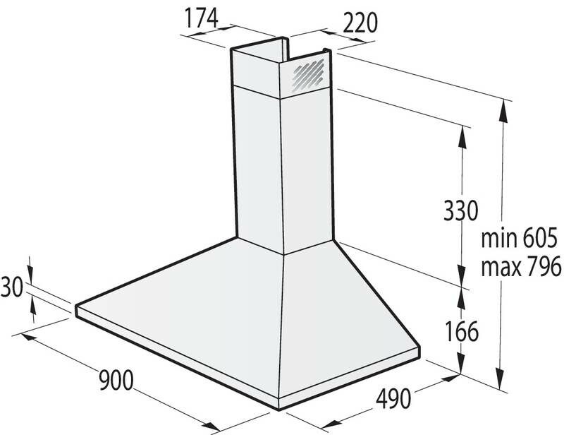 Odsavač par je určen k odtahu vzduchu do komína. Pokud ale nemáte možnost odsavač připojit na přímý odtah do komína, tak jej můžete využít k recirkulaci vzduchu. Podle aktuálních preferencí si vyberete jeden ze tří stupňů výkonu. Během svého provozu dosahuje výkonu odtahu až 450 m3/h. Velkou výhodou je jeho nízká hlučnost, která se pohybuje v rozmezí od 56 dB do maximálních 65 dB. O perfektní osvětlení pracovní plochy se postará LED osvětlení, které se nachází na spodní části panelu.