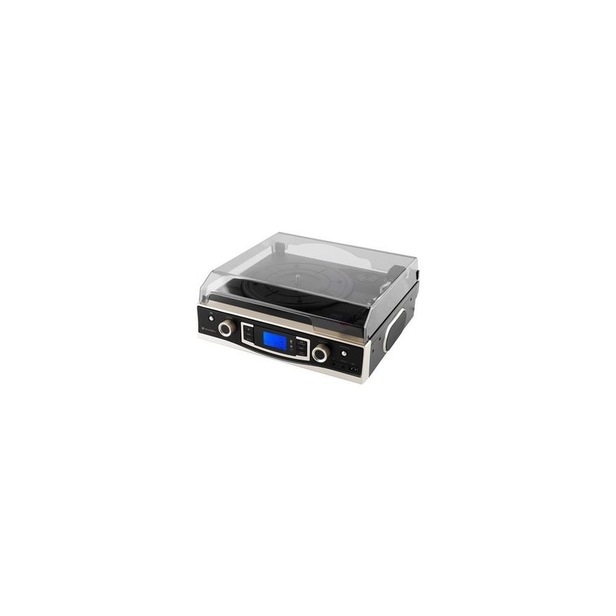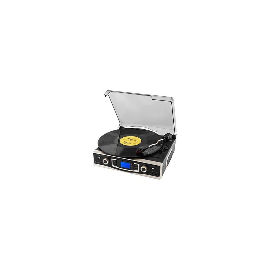 Gramofon s digitálním FM rádiem, vestavěné repro, USB vstup -přehraje MP3/WAV/WMA, převod do MP3, rychlost 33/45/78 RPM, Bluetooth