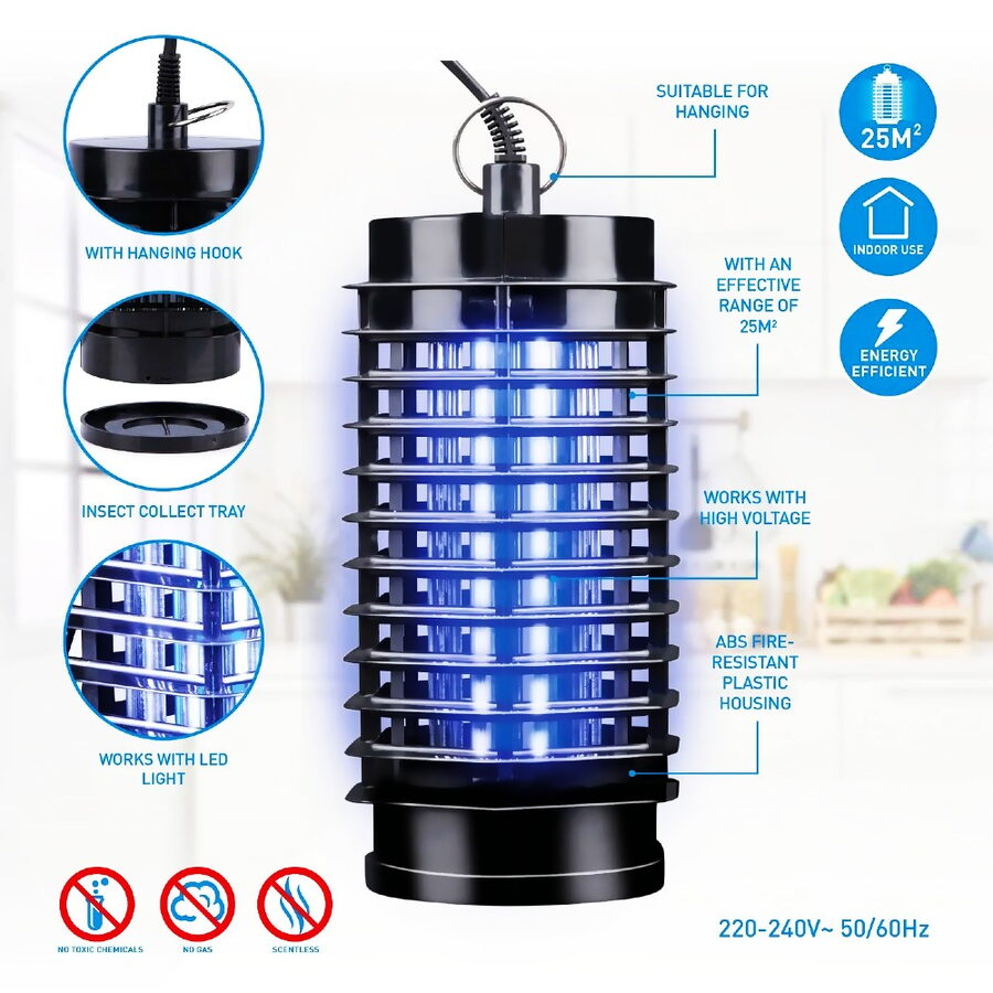 Zajistěte si klidné prostředí bez obtížného hmyzu s tímto účinným LED lapačem. Díky pokrytí až 25 m2 spolehlivě ochrání vaši domácnost, kancelář či chatu. Moderní LED technologie přitahuje hmyz tiše a bez chemikálií, zatímco kompaktní design a 1metrový kabel umožňují snadné umístění kamkoli.