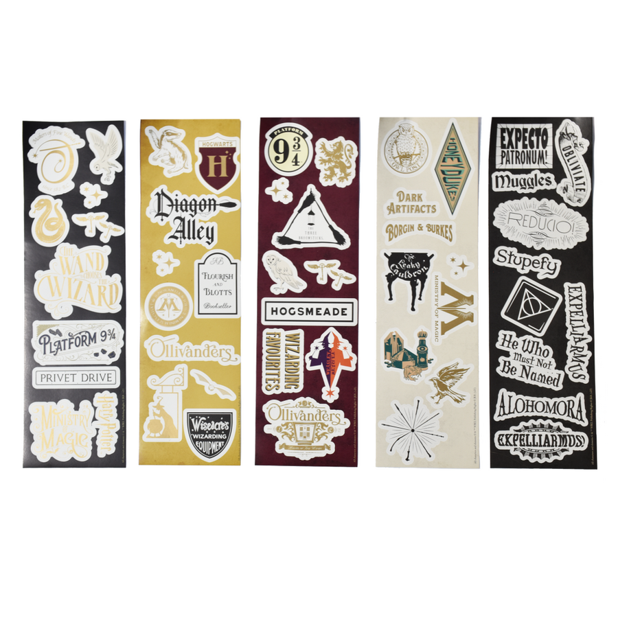 Set obsahuje 50 ks samolepek s motivem kouzelnického světa Harryho Pottera.