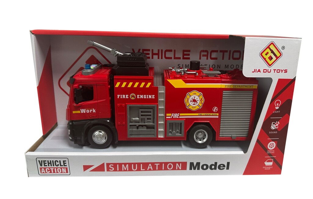 Kovové auto hasičů se zvukovým a světelným efektem, otvíratelné dveře, auto je na setrvačník.