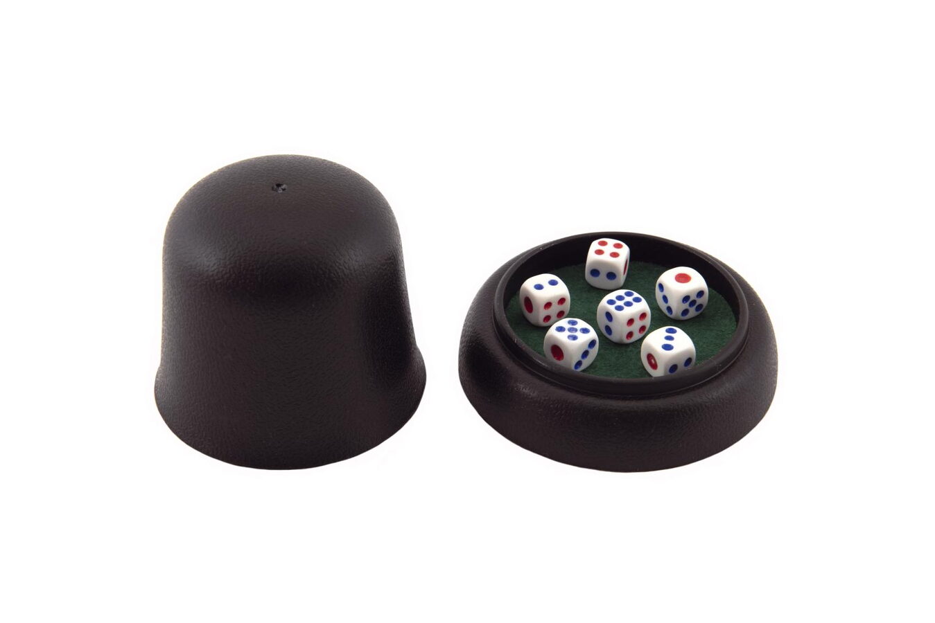Hrací kostky s kalíškem. Oblíbená a jednoduchá hra s kostkami, kterou si vaše děti zamilují. Navíc se u toho naučí základní počty. Vhodné také na cesty.