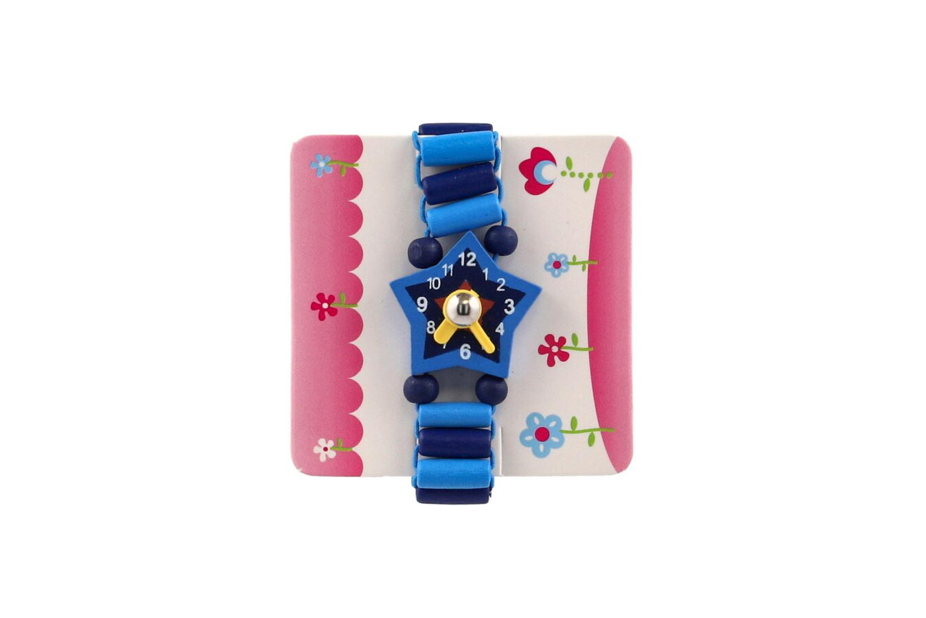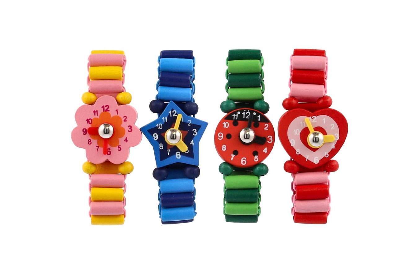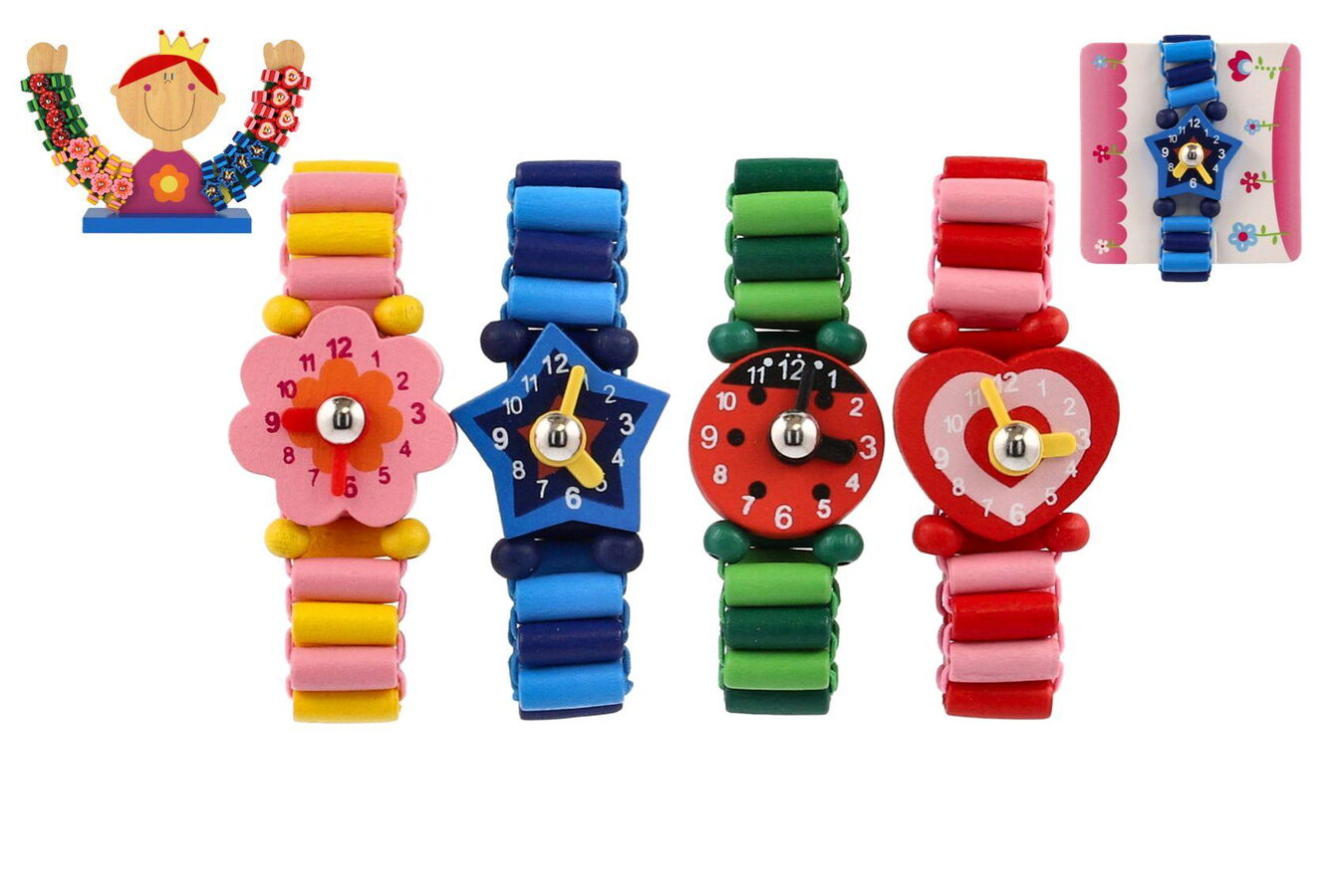 Teddies Hodinky dřevo náramkové 7cm asst 4 druhy 72ks se stojánkem