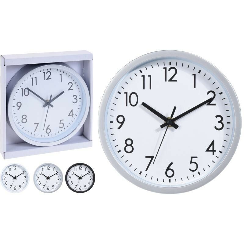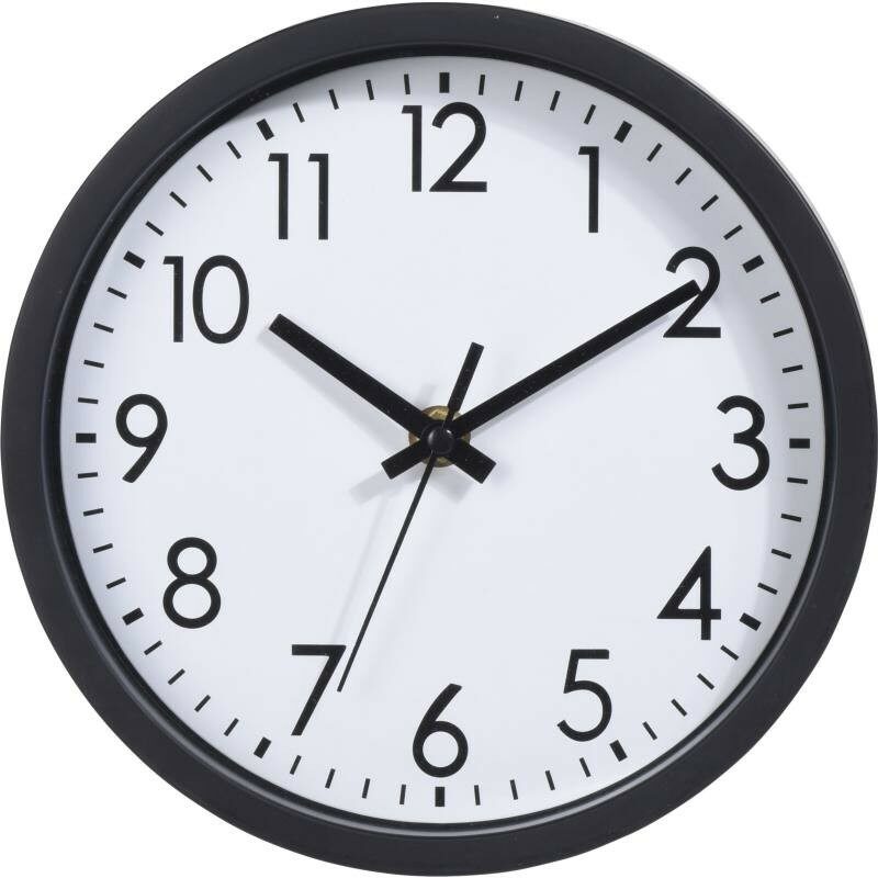 - nástěnné hodiny s černým rámem a bílým ciferníkem