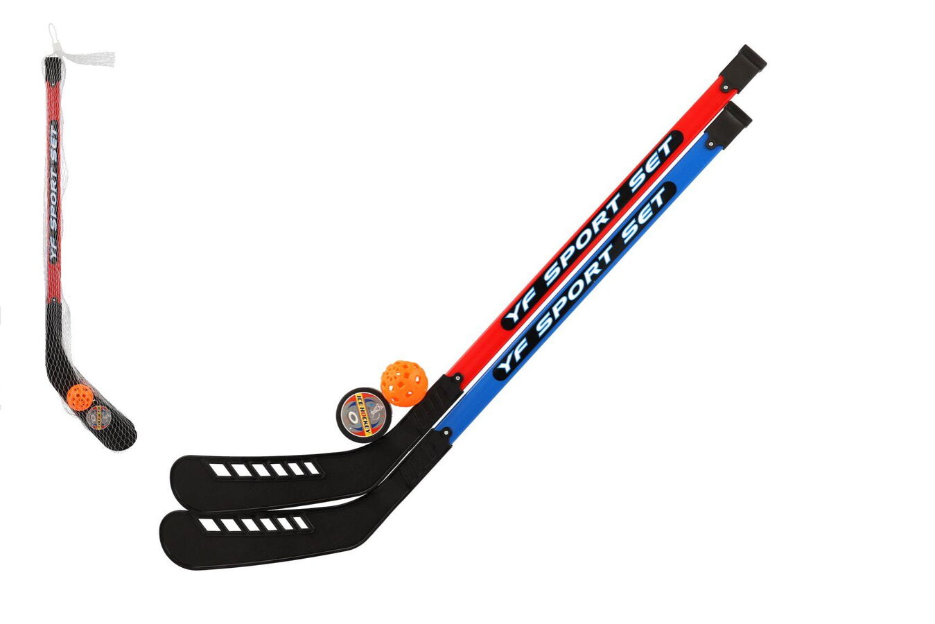 Hokejka pozemní 2ks plast 92cm + florbalový míček + puk v síťce