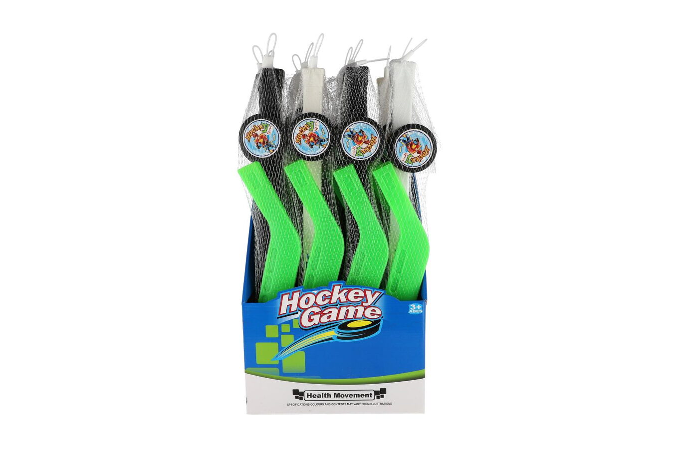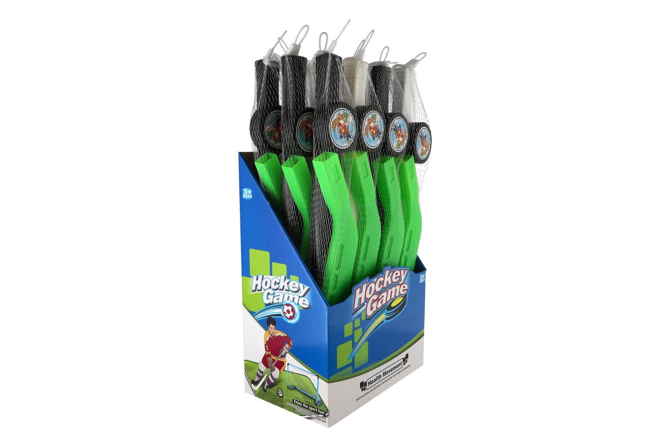 Hokejka s pukem plast 74cm 2 barvy v síťce 12ks v boxu