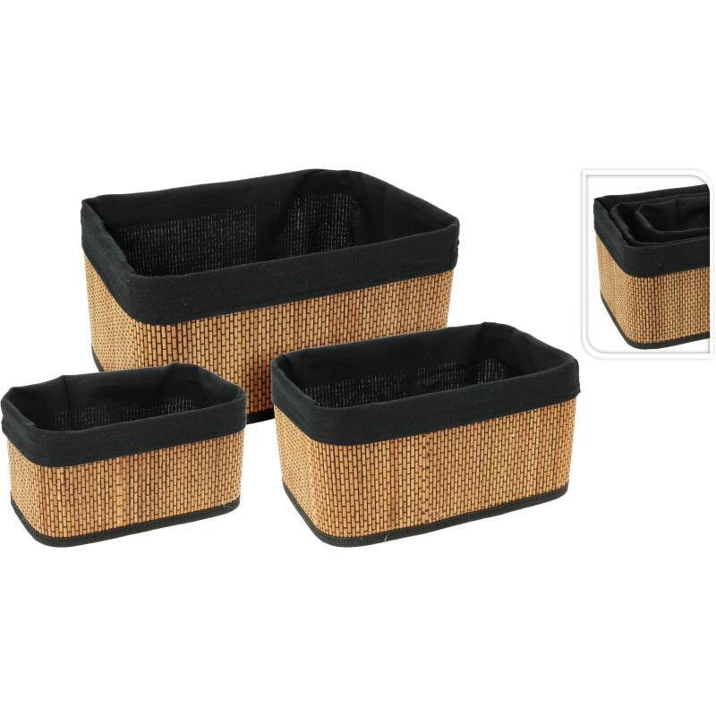 Sada 3 bambusových košíků s černou textilií – elegantní úložné řešení pro každý interiér