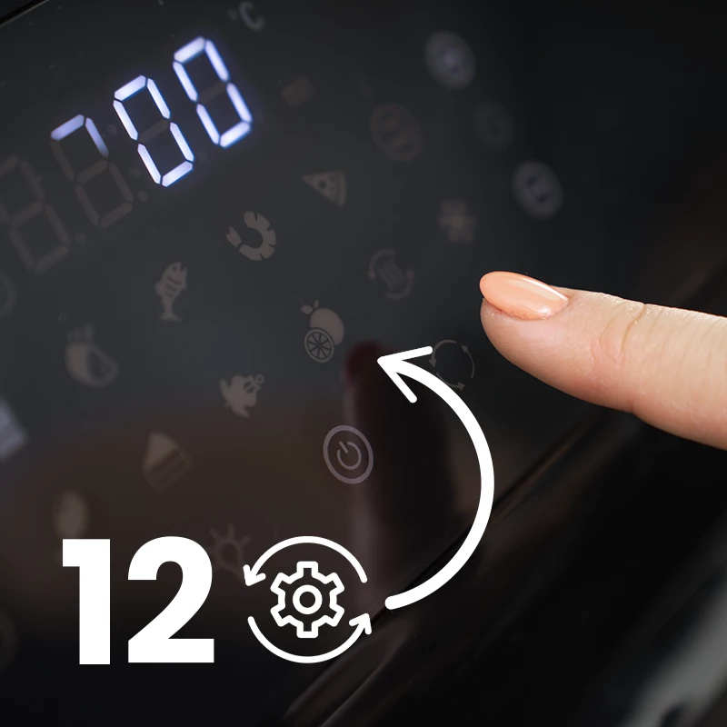 12 automatických programůFritéza je vybavena až 12 přednastavenými programy. Díky tomuto řešení rychle vyberete automatické nastavení pro daný produkt. Ideální řešení pro všechny, kteří ocení úsporu času v kuchyni. Jste zvědaví, co všechno můžete s fritézou Huslog rychle připravit? Samozřejmě hranolky, kuře, steak, pečeně, pizzu, krevety, ryby, upečete chléb a koláče a dokonce i usušíte houby nebo ovoce – a to jsou jen příklady. |