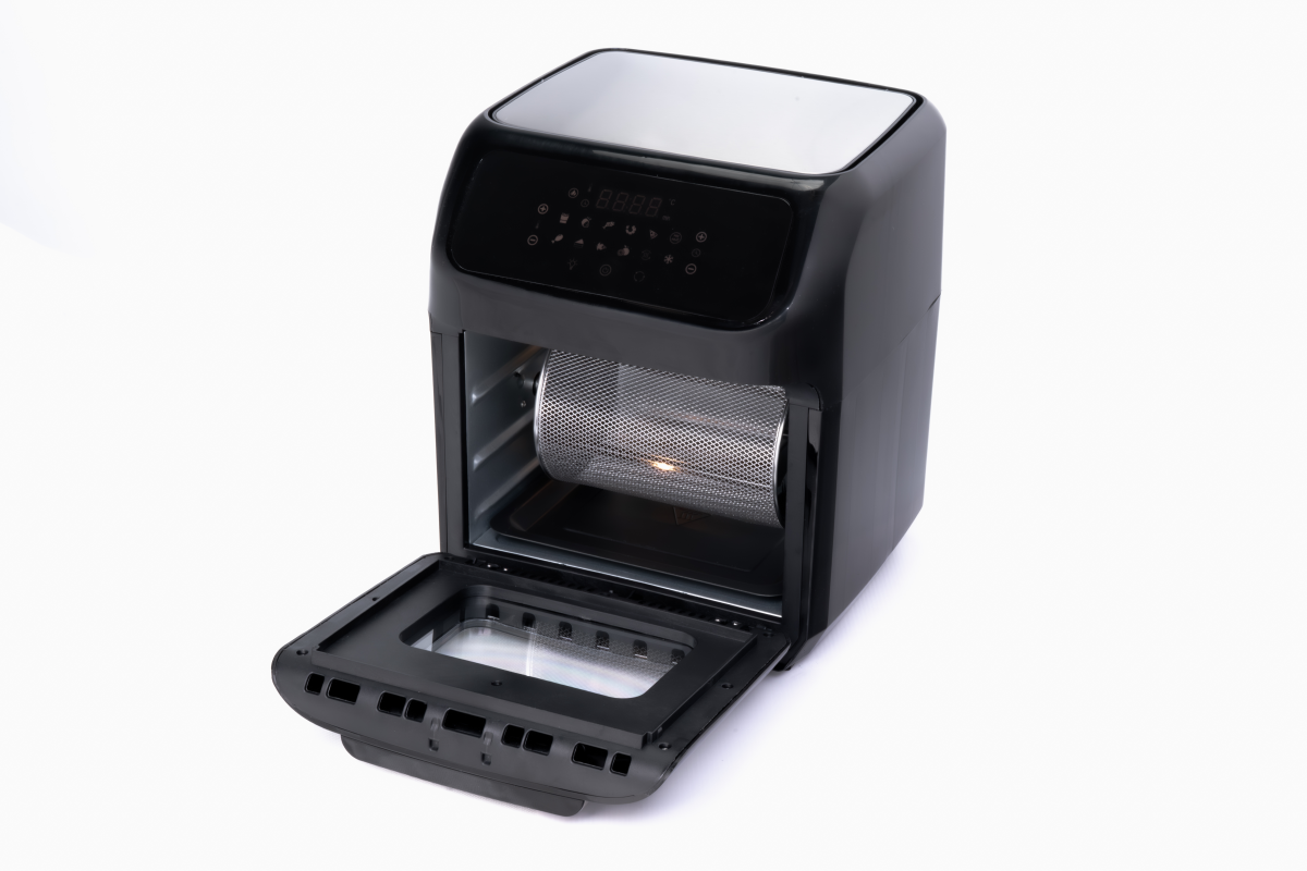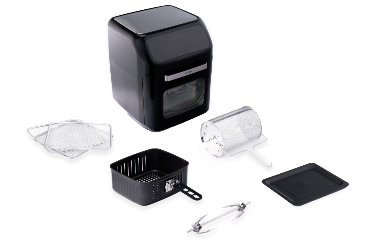 Mnoho doplňků – široká nabídka pokrmůSada obsahuje tři síťové tácky, které vám umožní připravit rovnoměrně křupavé hranolky, zeleninu, ryby nebo maso. Odkapávací tácek je ideální pro odkapání přebytečného tuku, díky čemuž budou pokrmy zdravější. Otočný koš rovnoměrně peče maso, zeleninu a ryby a zajišťuje ideální křupavost. Rožeň je ideální pro pečení kuřete nebo kebabu a dvě vidličky na rožeň umožňují pohodlné a bezpečné otáčení pokrmů. Košík umožňuje smažení hranolků. |